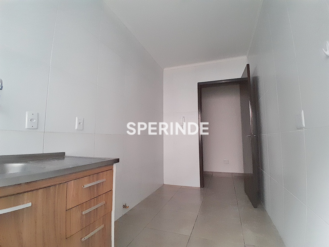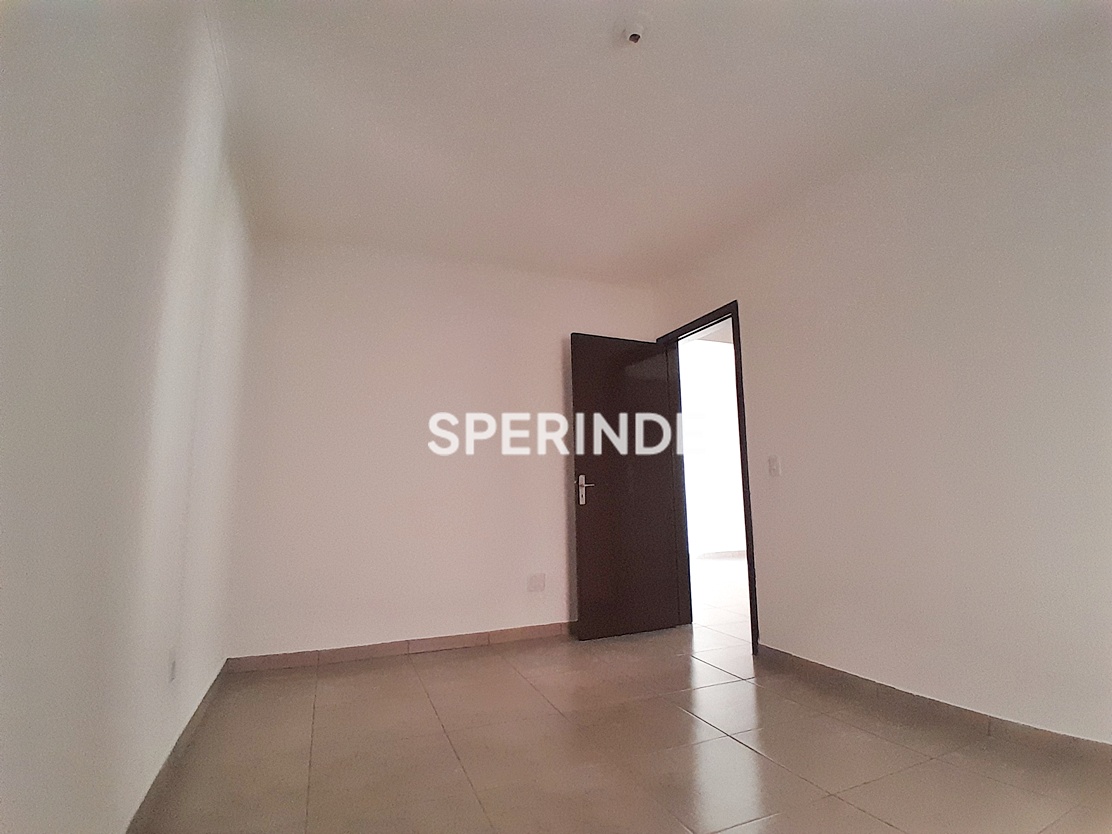 Imóvel com piso em cerâmica em todos os cômodos. Cozinha e banheiro equipados com balcões. Prédio simples, de perfil residencial.