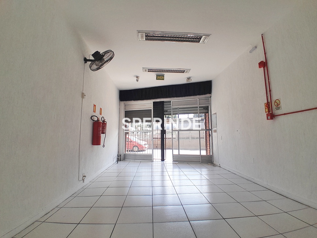 Loja comercial para alugar no bairro São João, em Porto Alegre, composta por sala principal e banheiro. O imóvel possui piso em cerâmica e conta com ventilador instalado no ambiente, proporcionando circulação de ar no espaço interno.