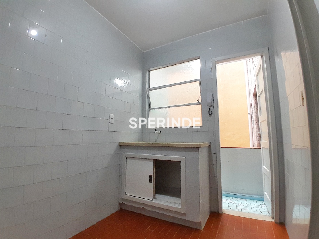 Apartamento JK no bairro Cidade Baixa, em Porto Alegre, composto por sala, banheiro, cozinha e área de serviço. Imóvel com piso em parquet e lajota, distribuído em ambiente integrado.