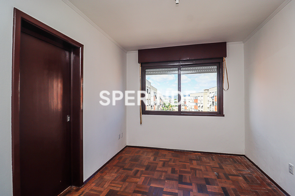 Apartamento no bairro Vila Jardim, em Porto Alegre, com 1 dormitório, sala, banheiro social e cozinha conjugada com área de serviço. O imóvel apresenta piso em parquet e cerâmica, com distribuição funcional dos ambientes.
