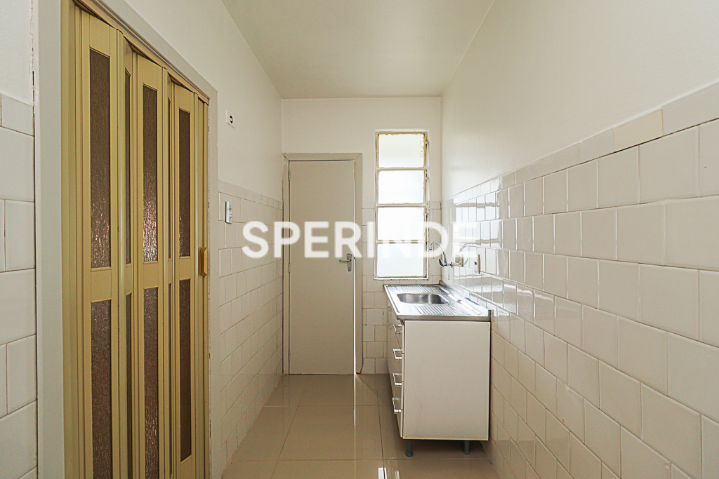 O banheiro possui box de vidro e a cozinha conta com balcão. O prédio oferece portaria e elevadores, garantindo acesso organizado às unidades e infraestrutura condominial compatível com uso residencial.