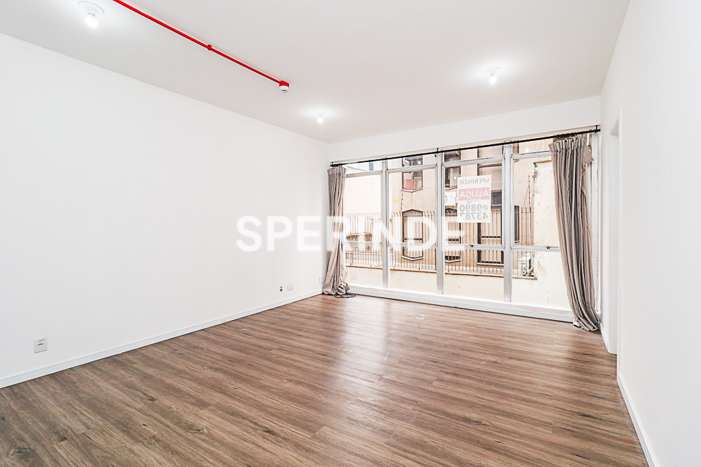 Sala comercial para locação no bairro Boa Vista, em Porto Alegre. O imóvel é composto por uma sala ampla e um banheiro social, com piso em laminado que proporciona praticidade e fácil manutenção.