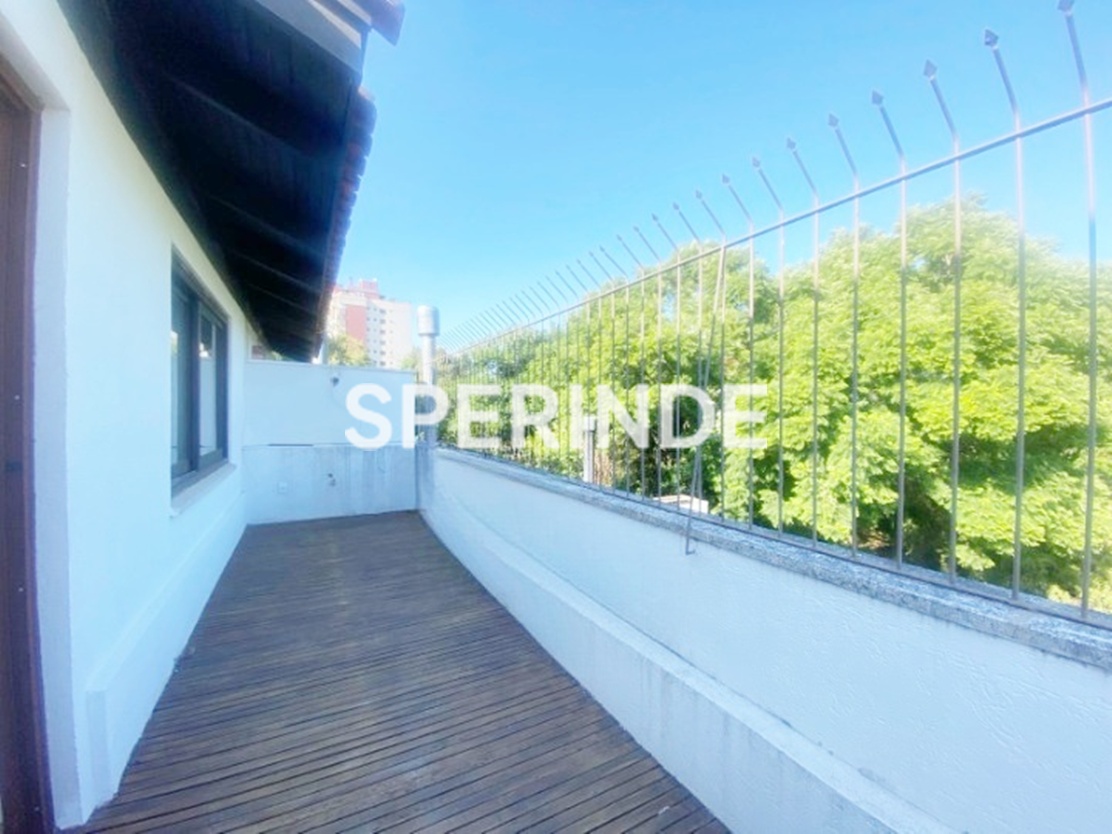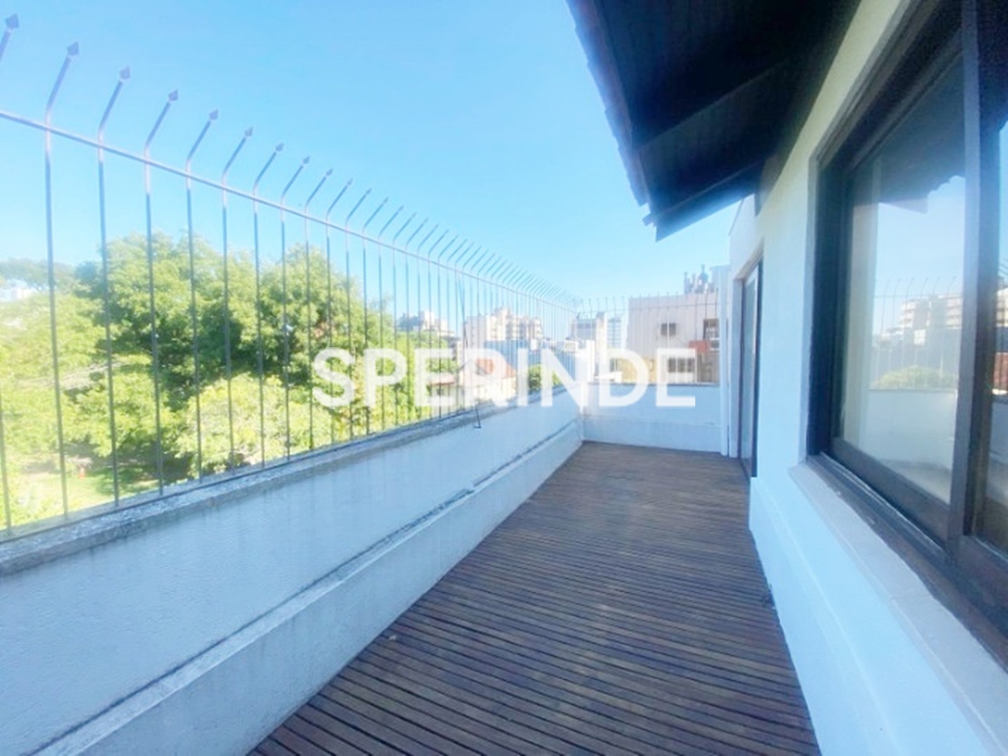Cobertura para alugar no bairro Bela Vista em Porto Alegre com 168m² de área privativa, composta por 3 quartos, sendo 1 suíte, e 1 vaga de garagem. No pavimento inferior, o imóvel conta com living, 2 quartos, cozinha com armários (em instalação), área de serviço, despensa e banheiro social.