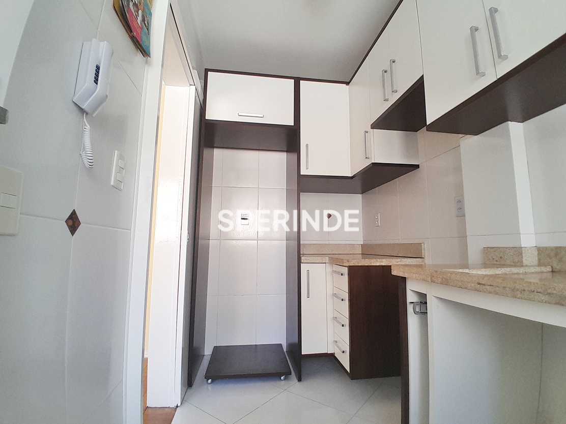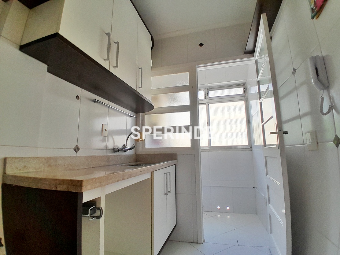 Apartamento para alugar no bairro Auxiliadora, em Porto Alegre, com 2 dormitórios, sala, cozinha, área de serviço e banheiro social. O imóvel possui piso em parquet e cerâmica, proporcionando ambientes distintos entre área social e áreas molhadas. A cozinha conta com móveis sob medida instalados, otimizando o espaço de armazenamento e organização.
