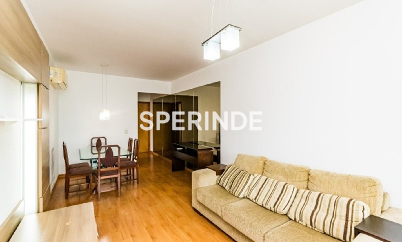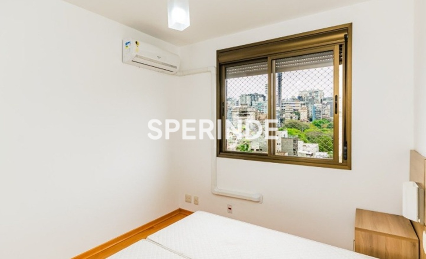 Apartamento mobiliado para alugar no bairro Petrópolis em Porto Alegre, com 87,53m² de área privativa. Possui 2 quartos, sendo 1 suíte com armários e split, living amplo em 2 ambientes com sacada fechada e churrasqueira, banheiro social e suíte com armários e box de vidro. Cozinha equipada com armários, fogão, geladeira, micro-ondas e coifa, além de área de serviço com armário, máquina de lavar roupas e banheiro auxiliar. Conta com piso laminado, excelente iluminação natural, vista panorâmica e 1 vaga de garagem coberta.