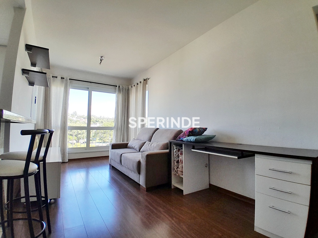 Apartamento semi mobiliado para locação no bairro Azenha em Porto Alegre, composto por 02 dormitórios, sendo 01 suíte, sala, banheiro social e cozinha conjugada com área de serviço. O imóvel possui piso em laminado nas áreas sociais e dormitórios, e cerâmica nas áreas molhadas, com ambientes distribuídos de forma funcional.