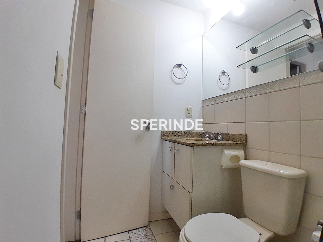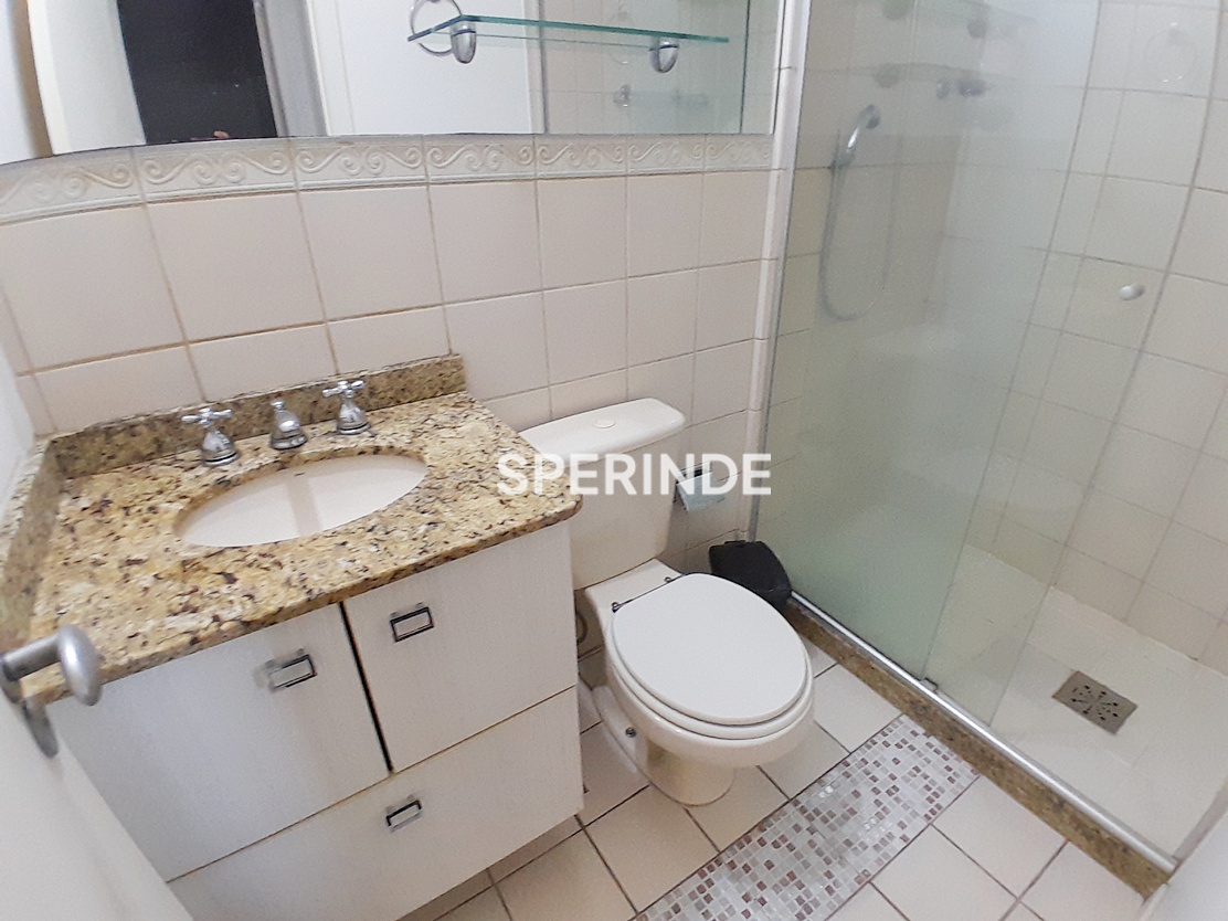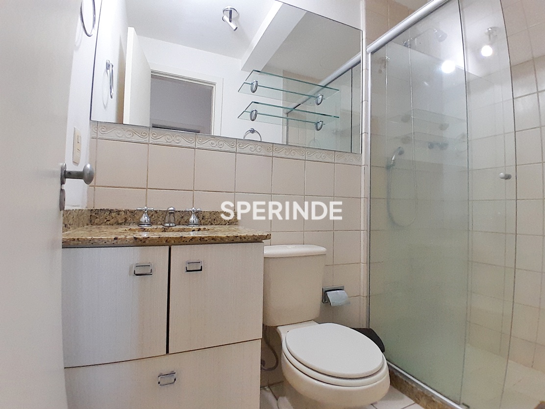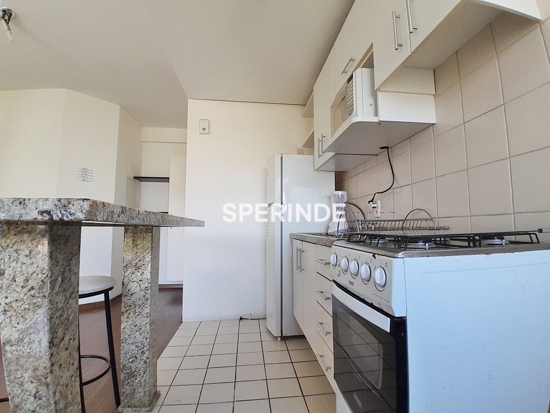 A sala conta com sofá e rack, a cozinha dispõe de móveis sob medida, geladeira e fogão, e um dos dormitórios possui sofá-cama e poltrona. A suíte está equipada com cama, armários aéreos e closet, e os banheiros possuem box de vidro. Prédio com elevadores, garantindo acesso aos andares.