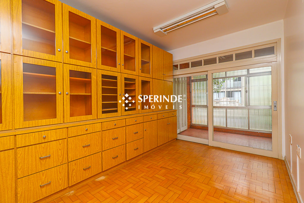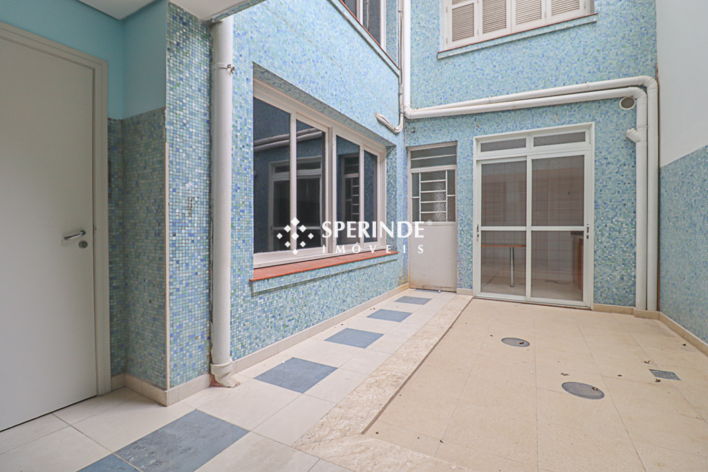 Prédio localizado no Centro Histórico, com distribuição em três pavimentos. No térreo, conta com hall de entrada, quatro salas, pátios com cozinha externa, sala externa com banheiro e banheiro social, além de espaço no pátio dos fundos com churrasqueira. Ambientes com boa divisão interna, permitindo diferentes configurações de uso.