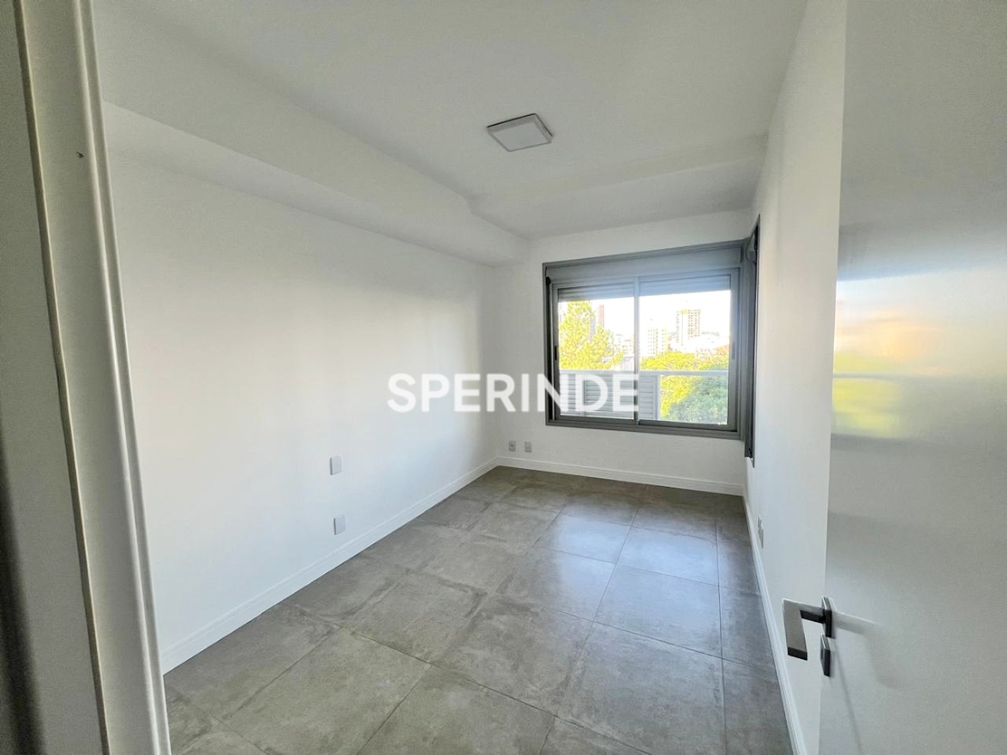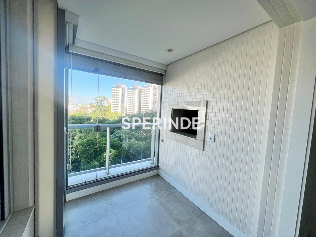 Apartamento de 1 dormitório no bairro Petrópolis, em Porto Alegre, com área privativa de 48,32m² e 1 vaga de garagem. O imóvel é composto por living, sacada com churrasqueira, banheiro social e cozinha americana equipada com armário, coifa e cooktop. Possui ar-condicionado instalado no dormitório e piso em porcelanato.