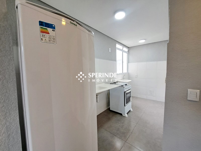 Apartamento bem localizado, próximo a ULBRA Canoas, no bairro São Luis, Canoas. Com 02 quartos, 41,19m², semi-mobiliado, 1 vaga descoberta de estacionamento, posição solar leste. Living, split, quartos, banheiro com box, cozinha com fogão, geladeira e área de serviço conjugados.