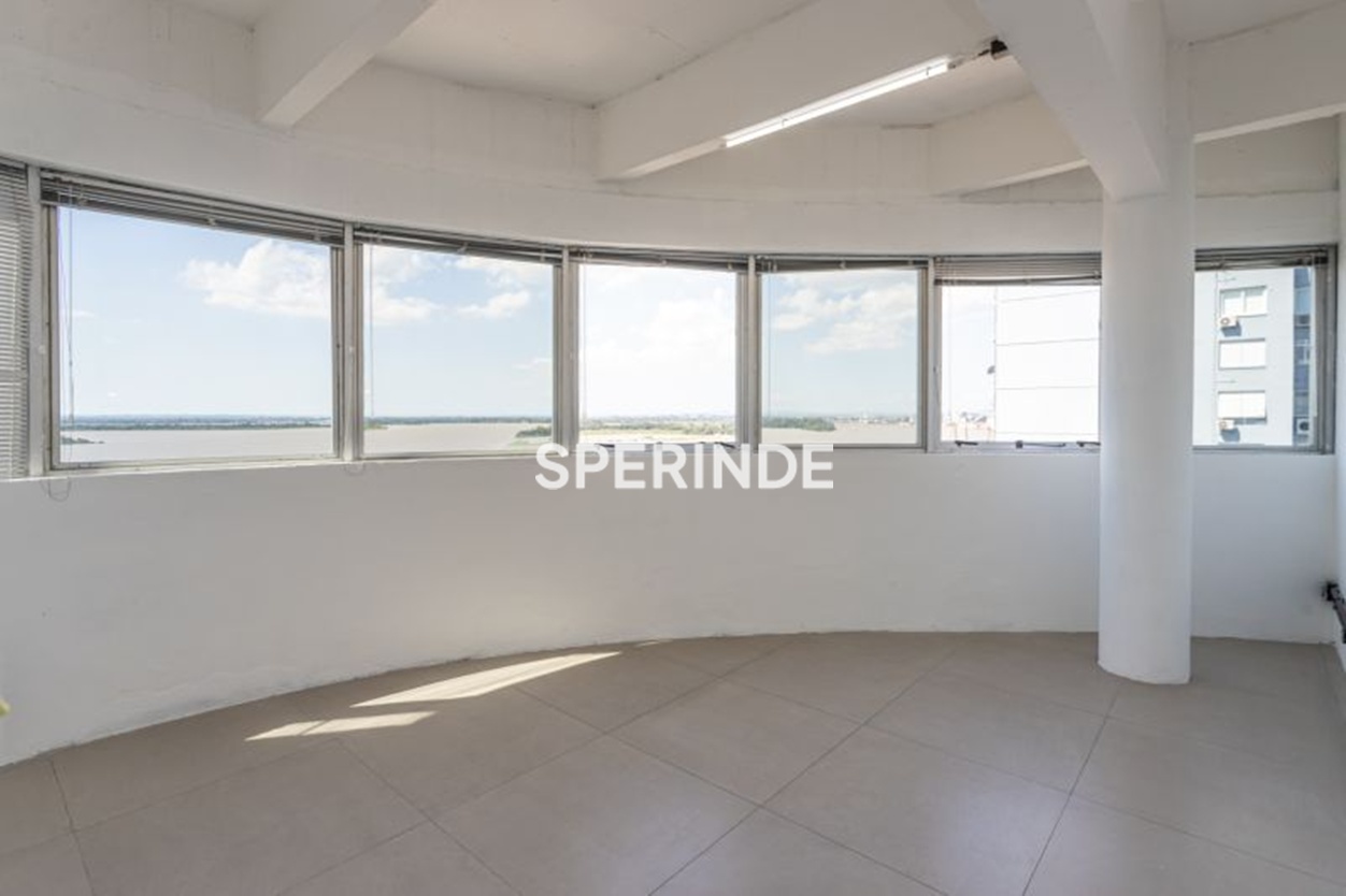 Sala comercial localizada no bairro Centro, em Porto Alegre, com área privativa de 170 m². O espaço é composto por sala ampla, 03 lavabos e copa, com vista direta para o Guaíba. O imóvel inclui 01 box de estacionamento em prédio garagem.