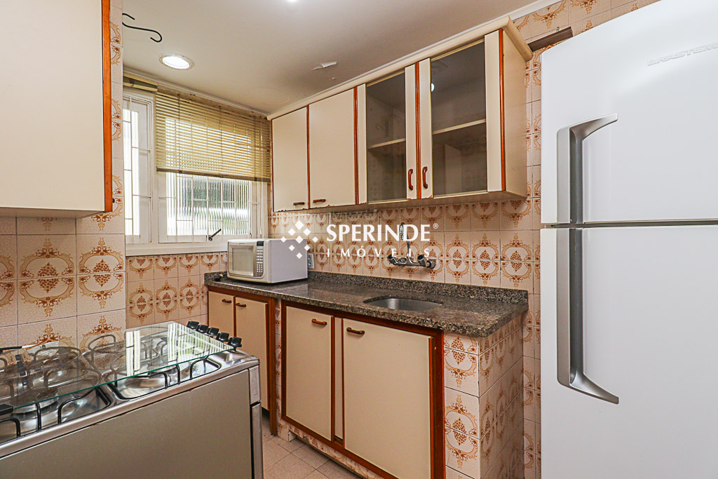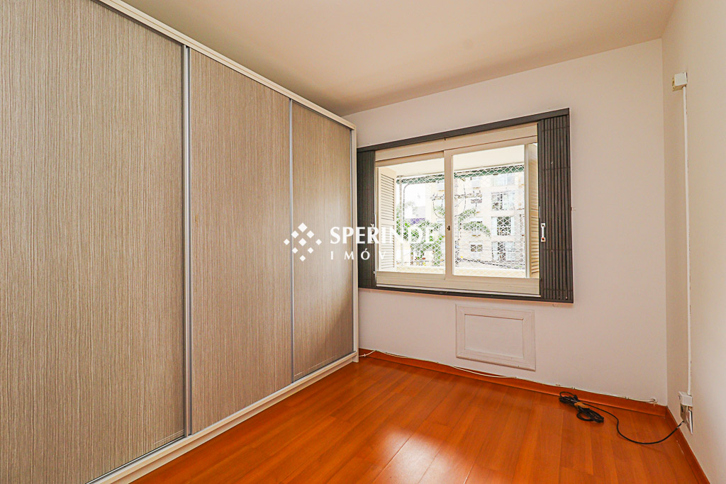 Apartamento semi mobiliado no bairro Petrópolis, em Porto Alegre. Composto de sala com sacada, dormitório, banheiro e cozinha conjugada com área de serviço. O piso é em laminado e cerâmica, proporcionando praticidade na limpeza e conservação dos ambientes.