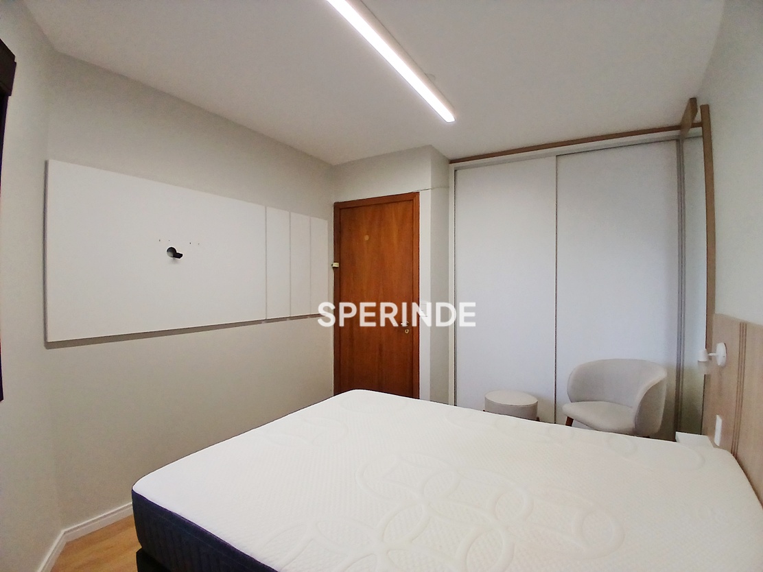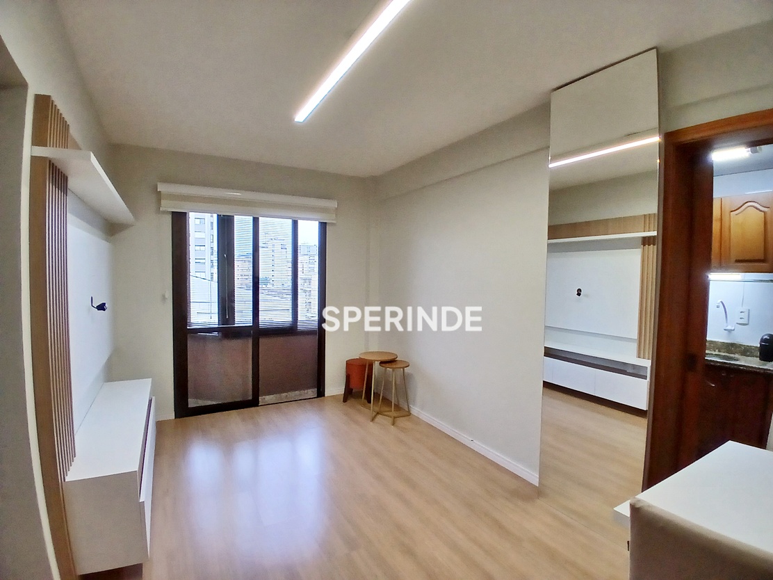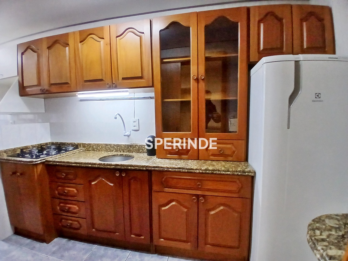 Apartamento mobiliado para alugar, 1 quarto, 1 banheiro, 50m², 1 vaga de garagem, posição solar leste. Sala com sacada, cozinha e área de serviço.