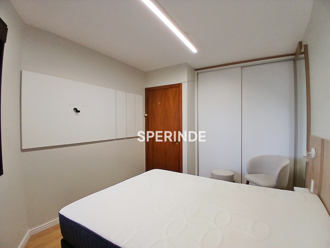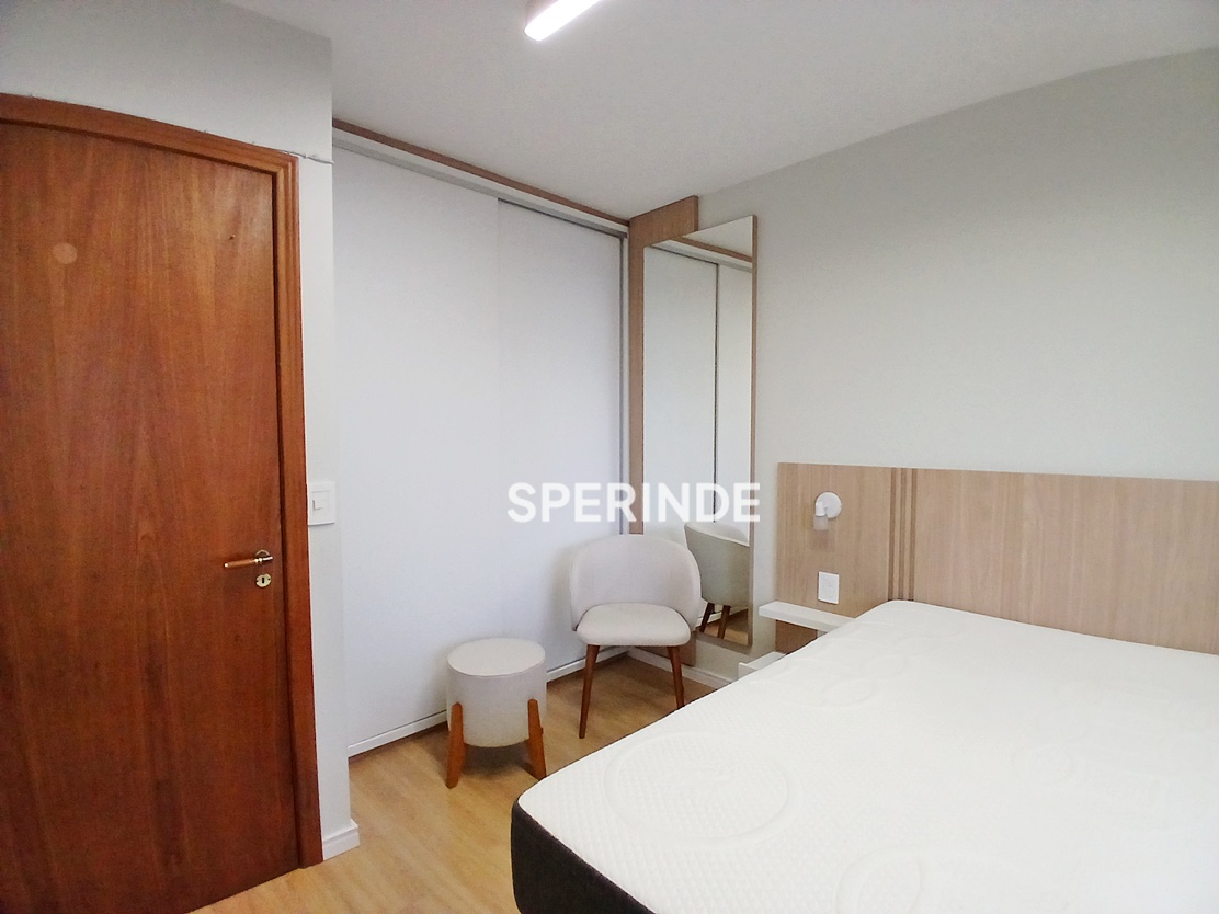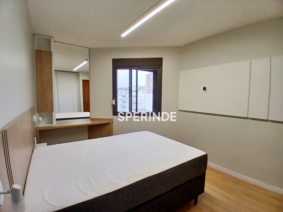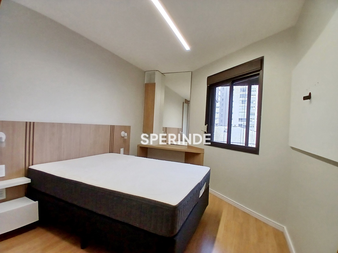 Apartamento mobiliado para alugar, 1 quarto, 1 banheiro, 50m², 1 vaga de garagem, posição solar leste. Sala com sacada, cozinha e área de serviço.