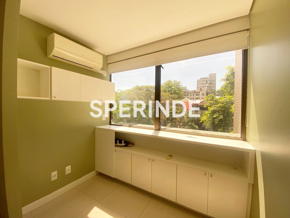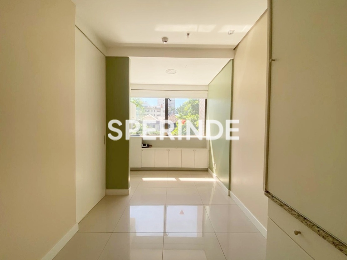 Conjunto comercial para alugar no bairro Bela Vista, em Porto Alegre. Possui 37m² de área privativa, com recepção, duas salas com ar-condicionado split, lavabo e copa, piso em porcelanato e uma vaga de garagem coberta.