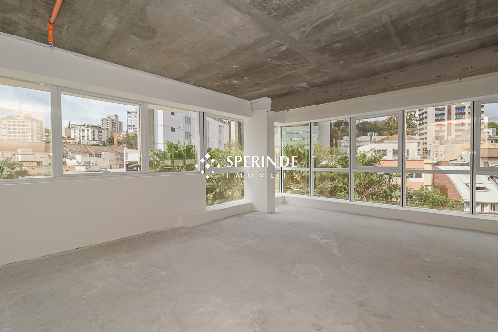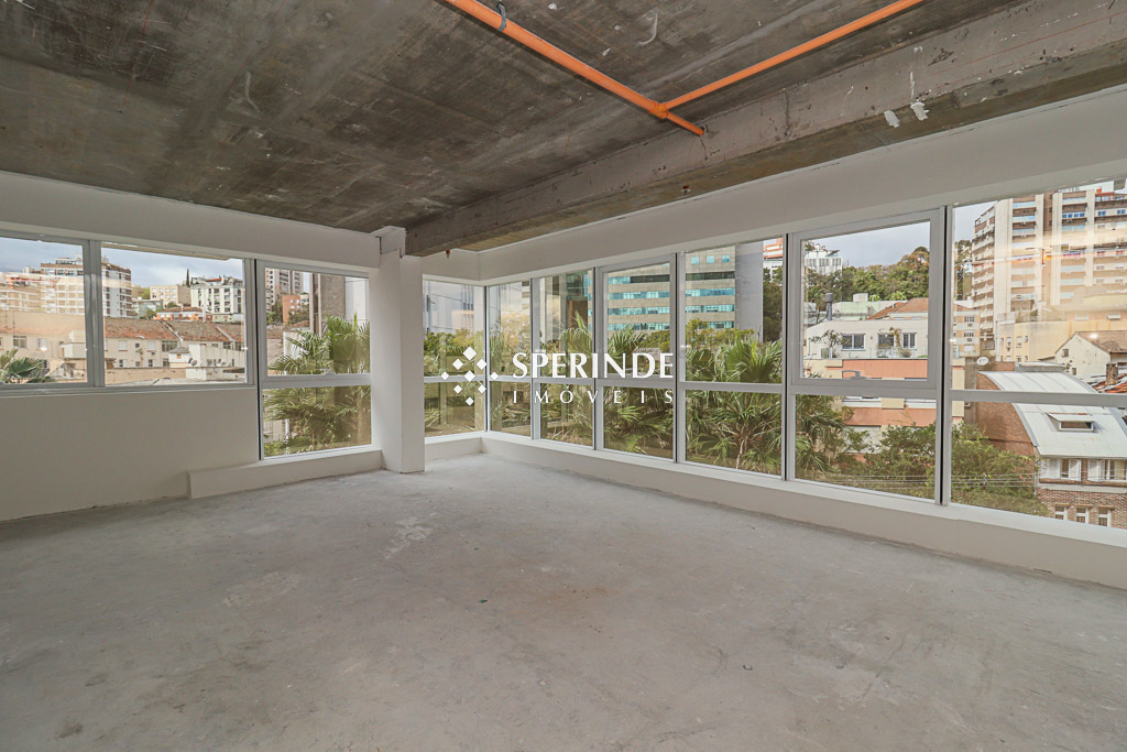 Sala comercial com excelente localização, no bairro Moinhos de Vento, com 1 banheiro, 51,90 m², com 1 vaga de garagem coberta, 6° andar, fundos/lateral e posição solar leste.