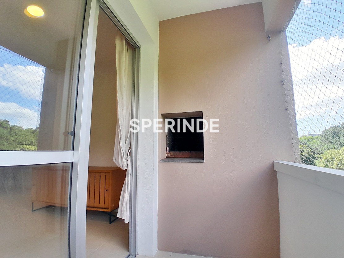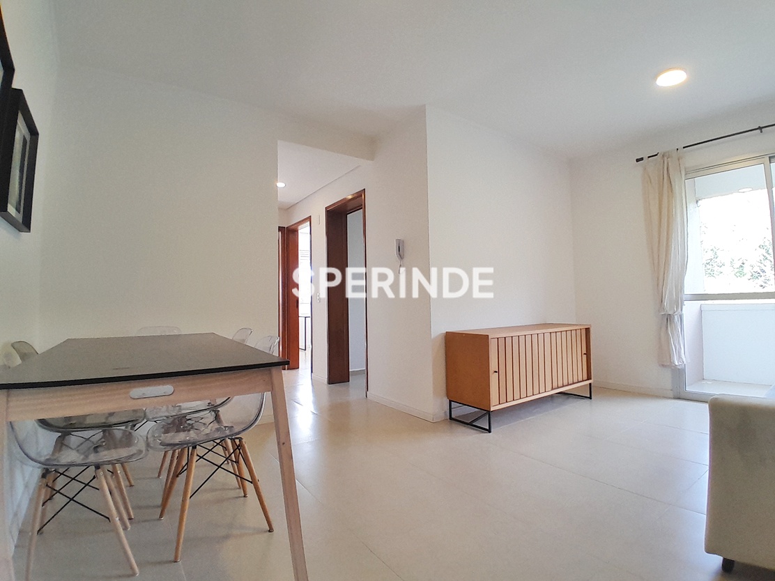 Apartamento semi mobiliado no bairro Nonoai, em Porto Alegre, composto de 2 dormitórios, sala, sacada com churrasqueira, banheiro social e cozinha conjugada com área de serviço. O imóvel possui piso em laminado e cerâmica, além de sala equipada com mesa, sofá, rack e ar split. A cozinha conta com armários, geladeira, fogão, máquina de lavar e secar, depurador de ar e aquecedor de água a gás. O banheiro dispõe de box de vidro.