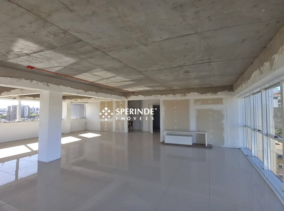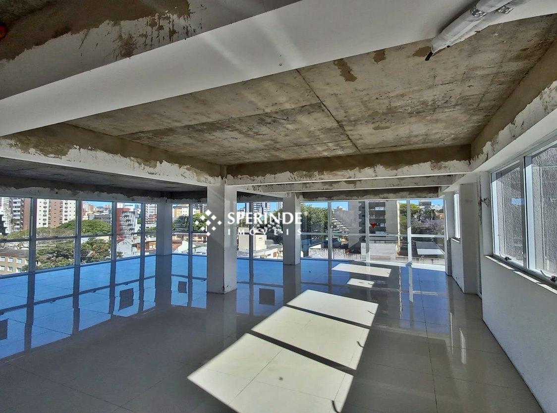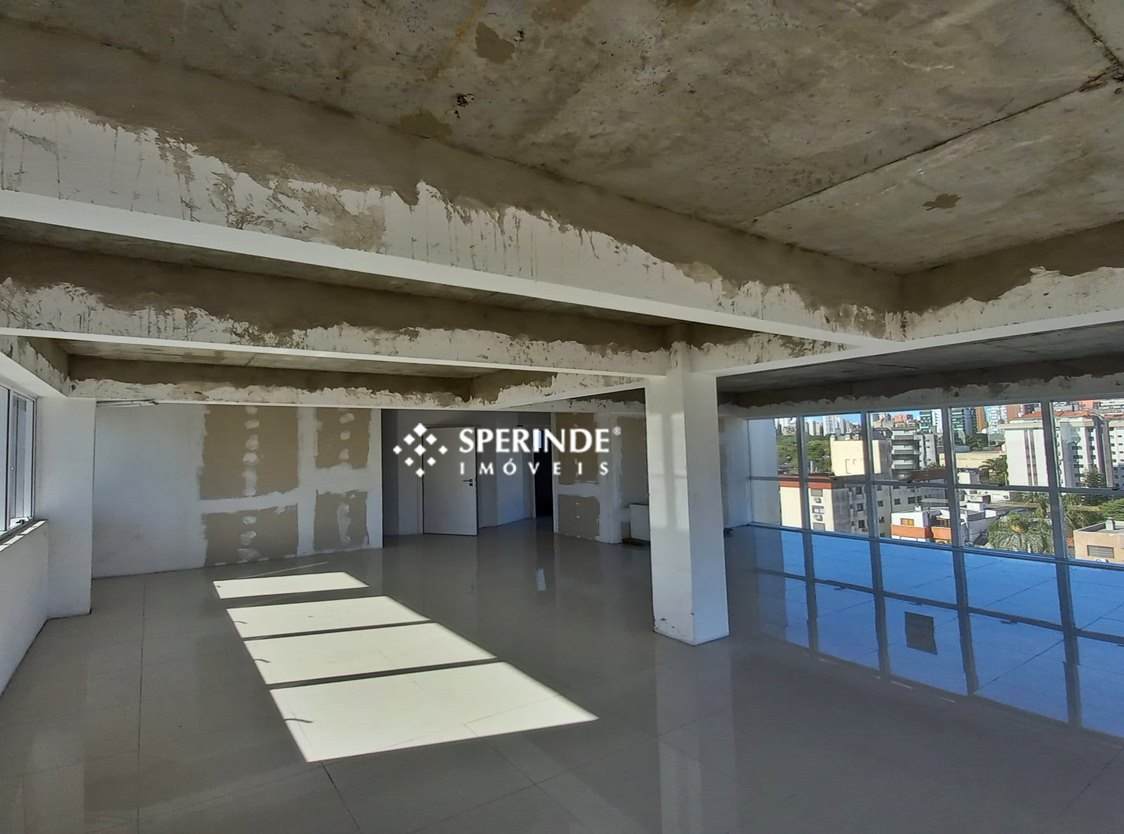 Sala no bairro Petrópolis, 2 banheiros, 100m², com 2 vagas de garagem cobertas, 8° andar, posição frente, posição solar leste/oeste/sul, recepção, sala ampla com vão livre, piso porcelanato, vista panorâmica.