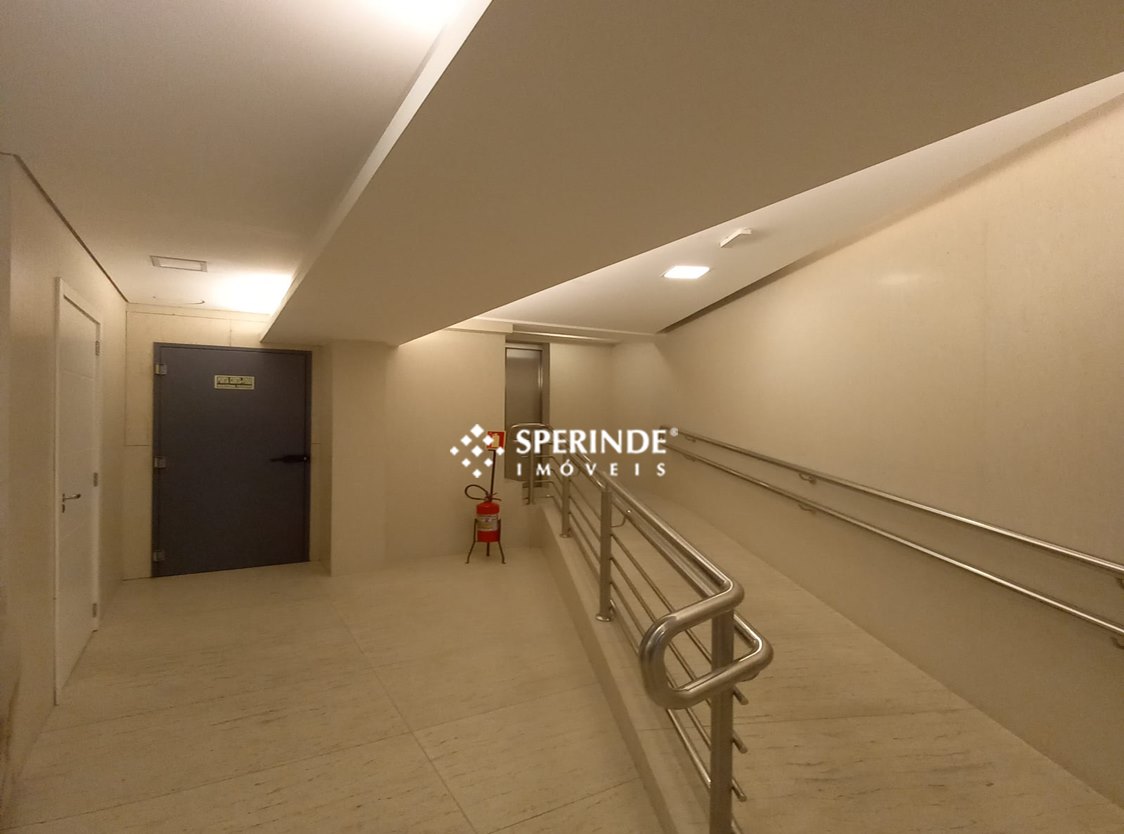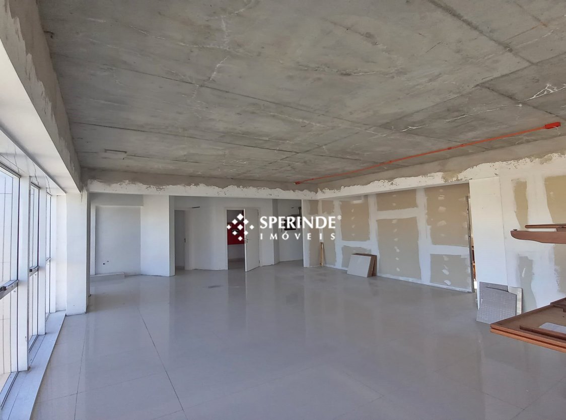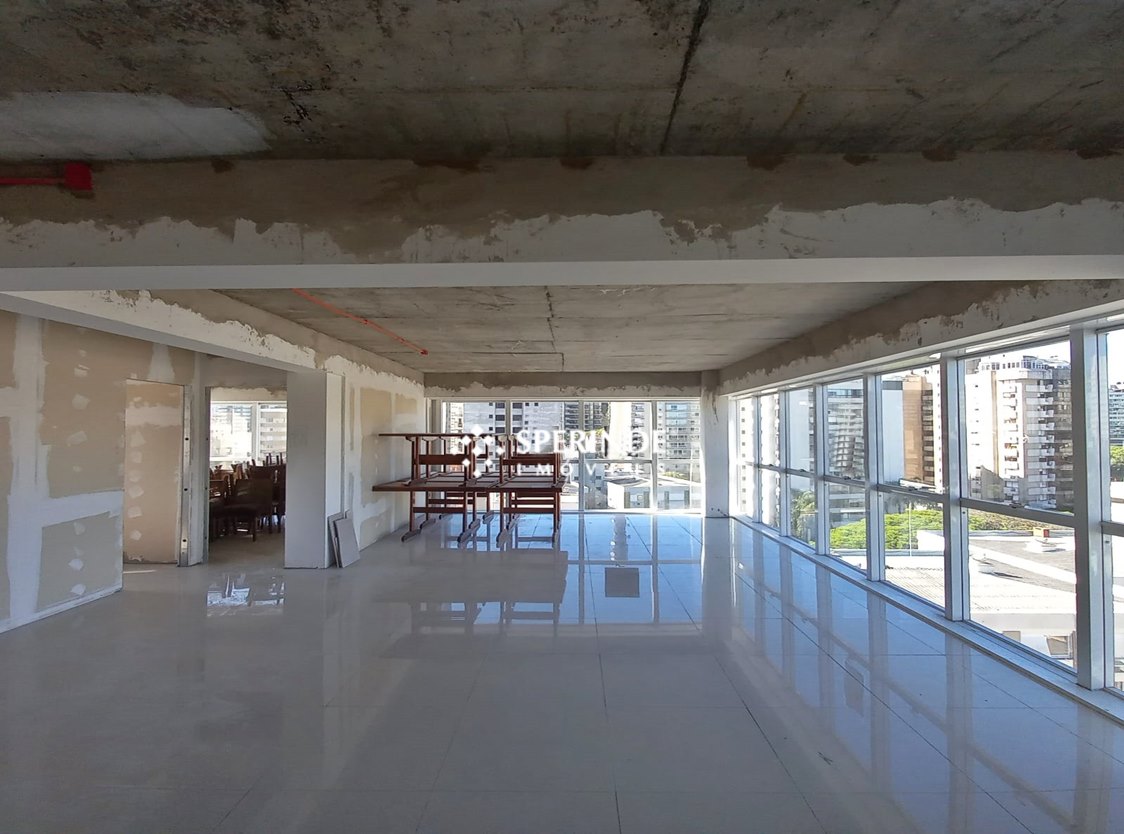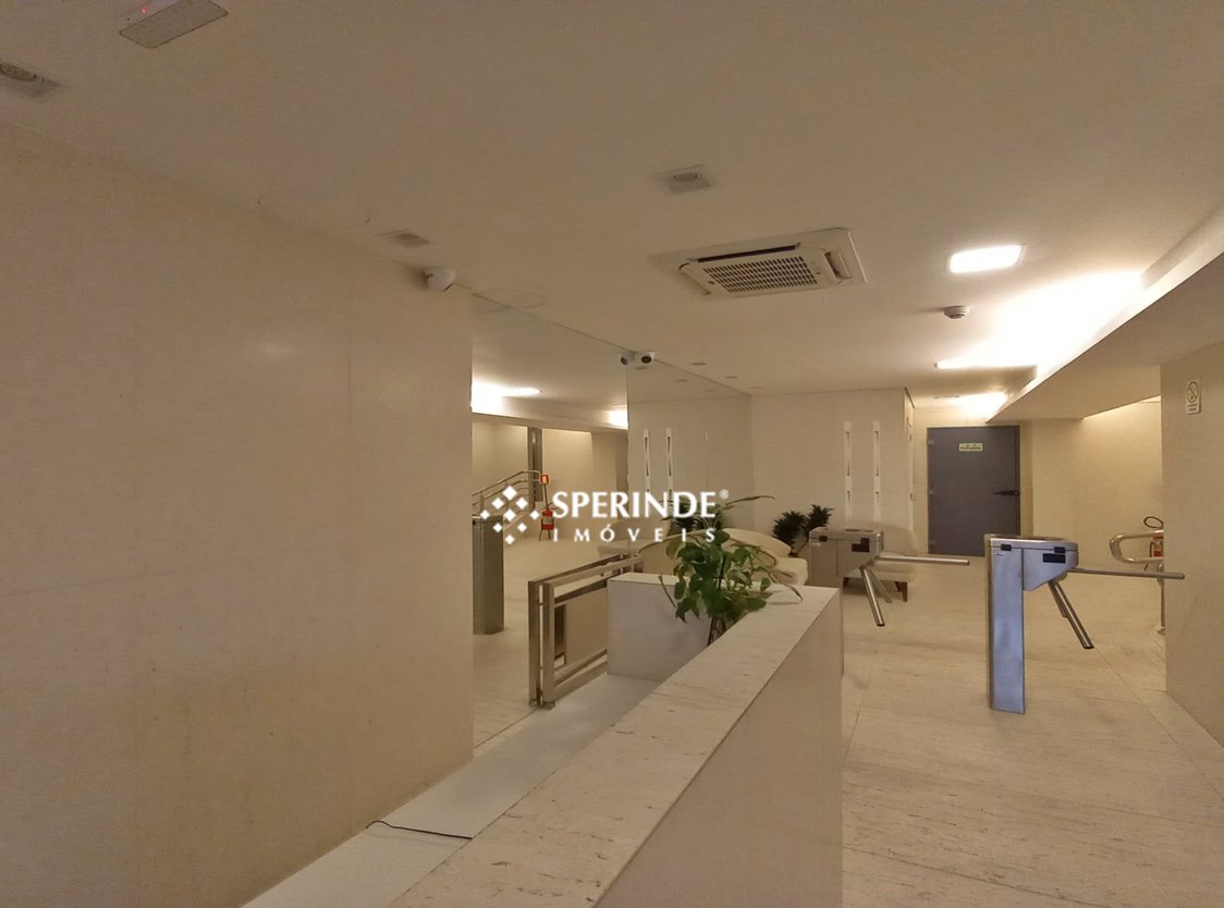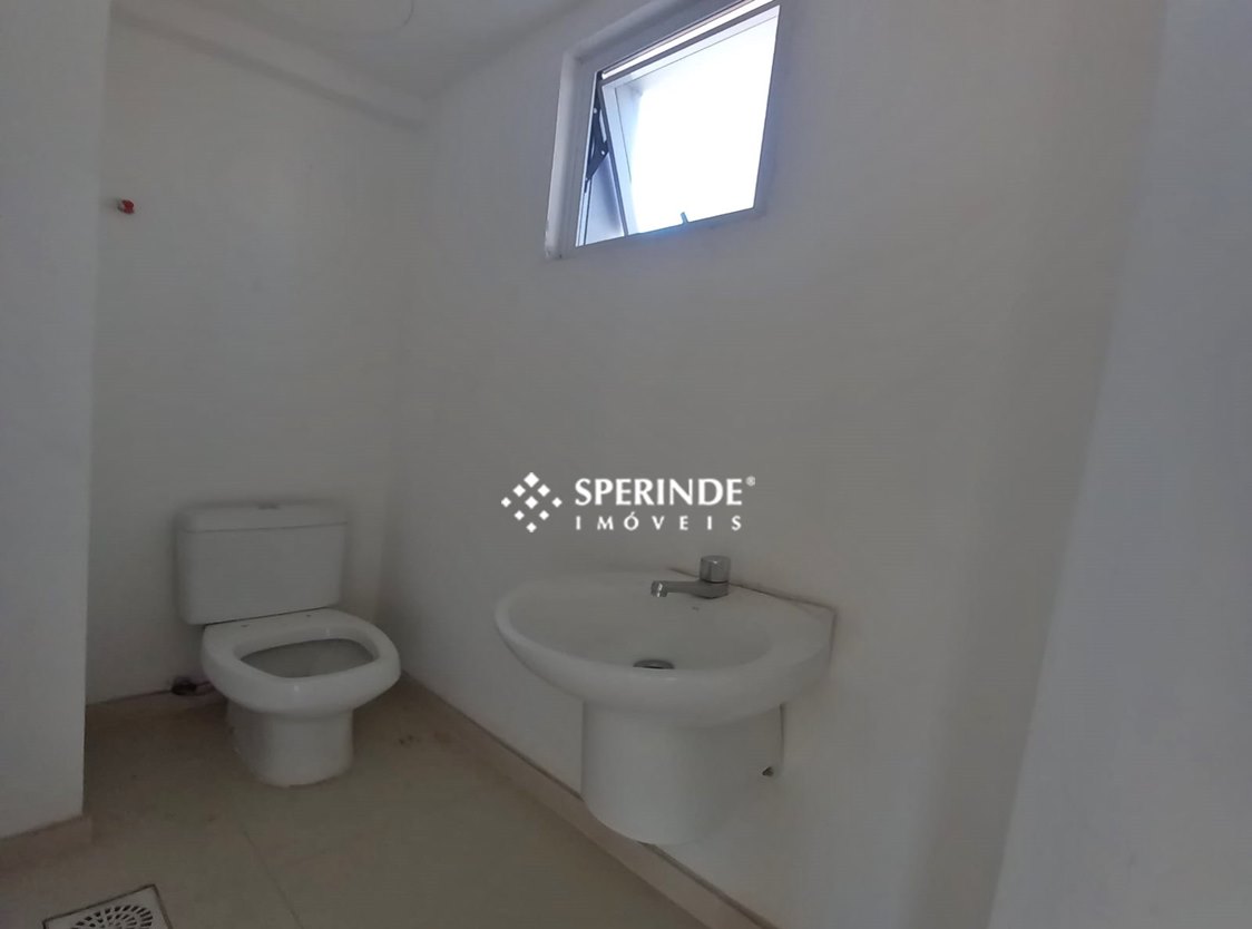 Sala no bairro Petrópolis, 2 banheiros, 100m², com 2 vagas de garagem cobertas, 8° andar, posição fundos, posição solar leste/oeste/norte, sala dividida em 3 ambientes, piso porcelanato, vista panorâmica.