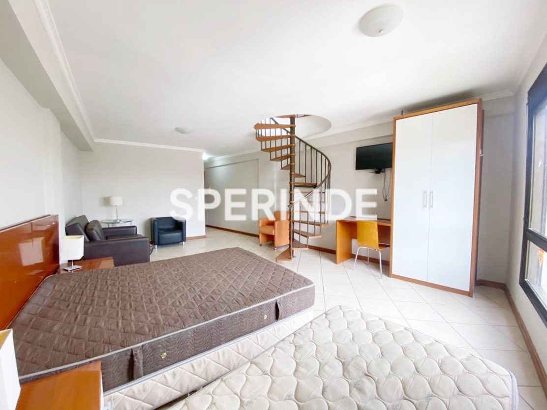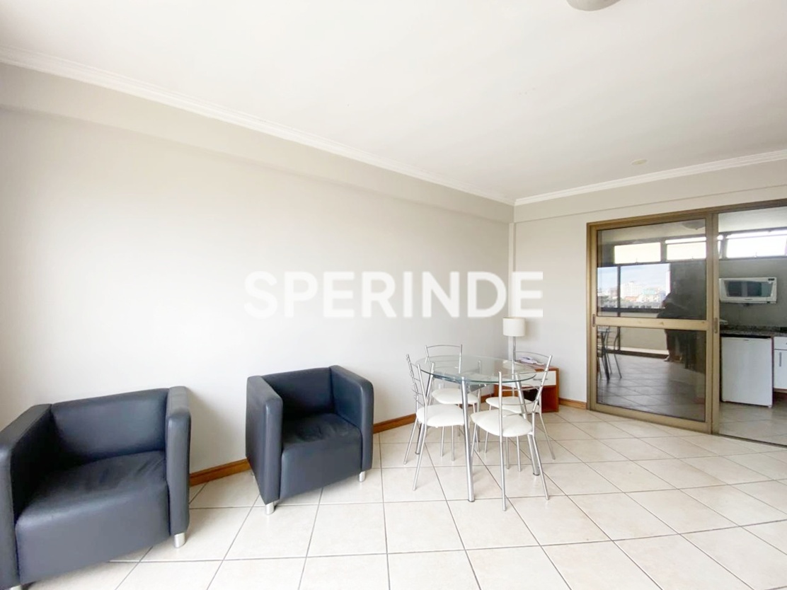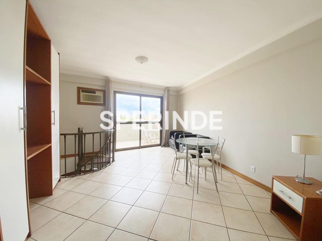 Cobertura tipo JK totalmente mobiliada para alugar no bairro Santana, com 70m² de área privativa, frente e posição solar norte. O ambiente integrado de sala e quarto é bem iluminado e conta com sofá, poltronas, duas camas, armários, televisão, ar-condicionado e escrivaninha. A cozinha possui armários, fogão cooktop, micro-ondas, frigobar, churrasqueira e bancada com cadeiras. O banheiro social dispõe de box e armários, sendo totalmente adaptado para pessoas com necessidades especiais. Piso em porcelanato em todo o imóvel. Há possibilidade de locação de vaga de garagem, conforme disponibilidade.