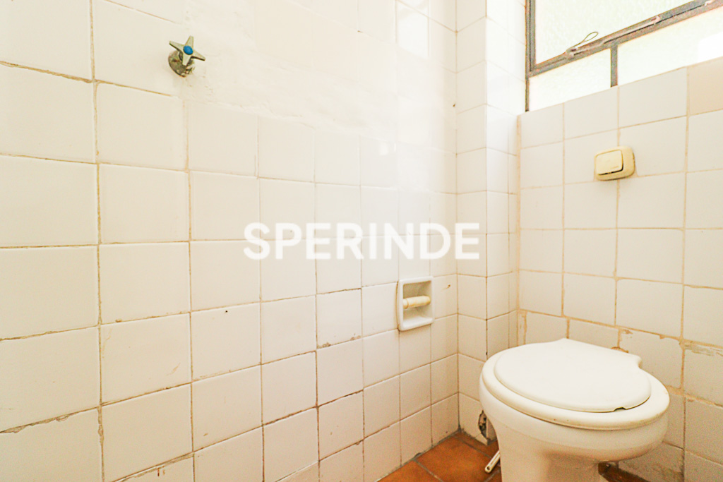 O banheiro social conta com box de acrílico. O prédio é simples e não dispõe de elevador, mantendo características residenciais tradicionais da região.