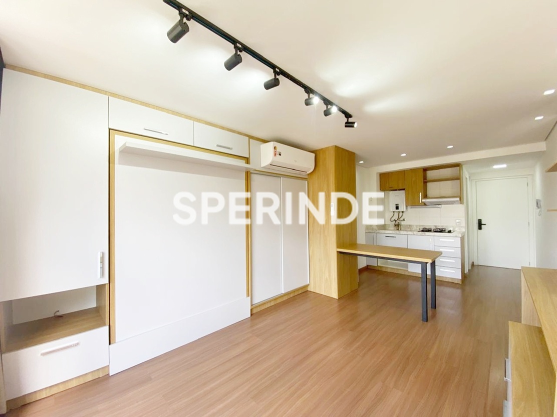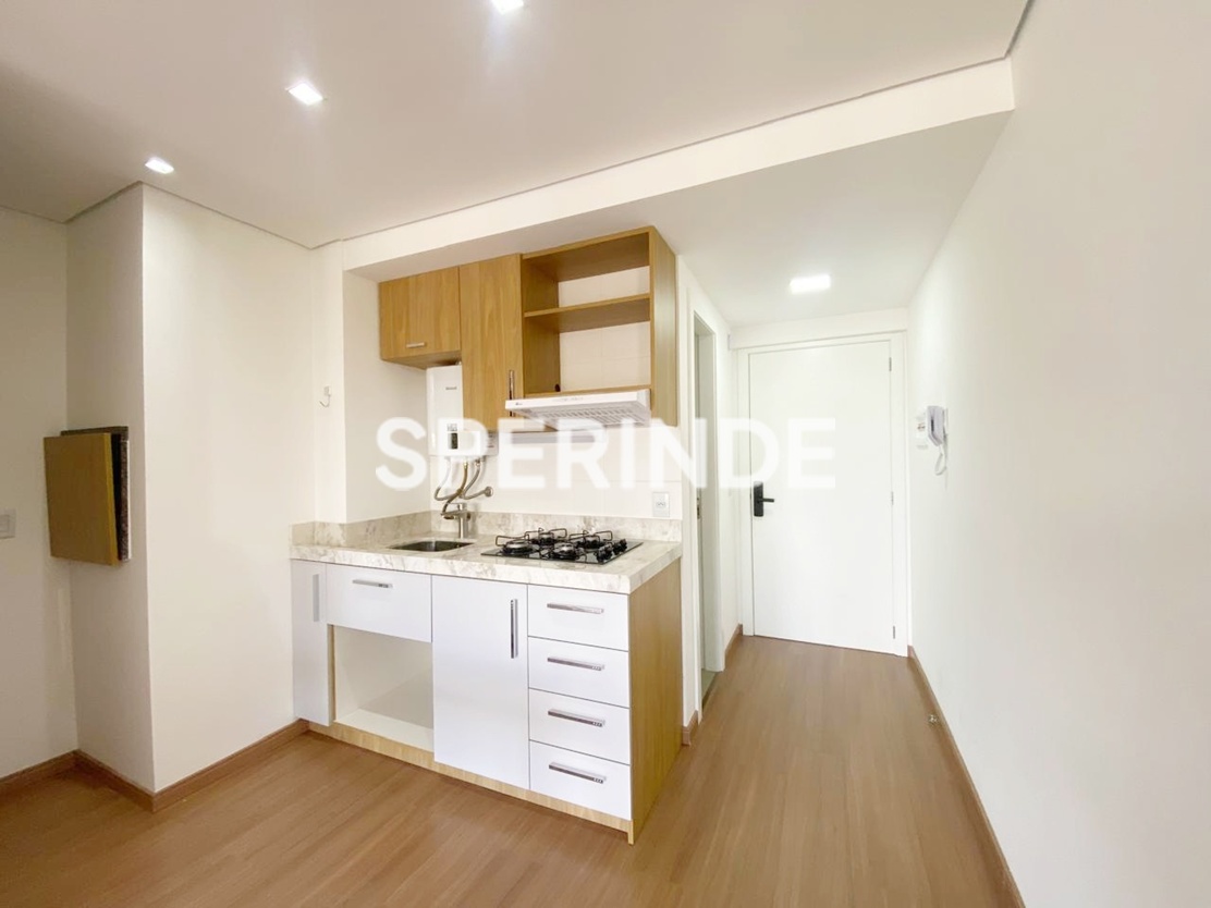 Apartamento para alugar no bairro Jardim Botânico, com 36m² de área privativa, 1 quarto e 1 vaga de garagem, localizado na Rua Oito de Julho, 195, em Porto Alegre. O imóvel é semi-mobiliado e conta com cozinha com armários, ar-condicionado instalado, banheiro com armário e box, além de boa iluminação natural.