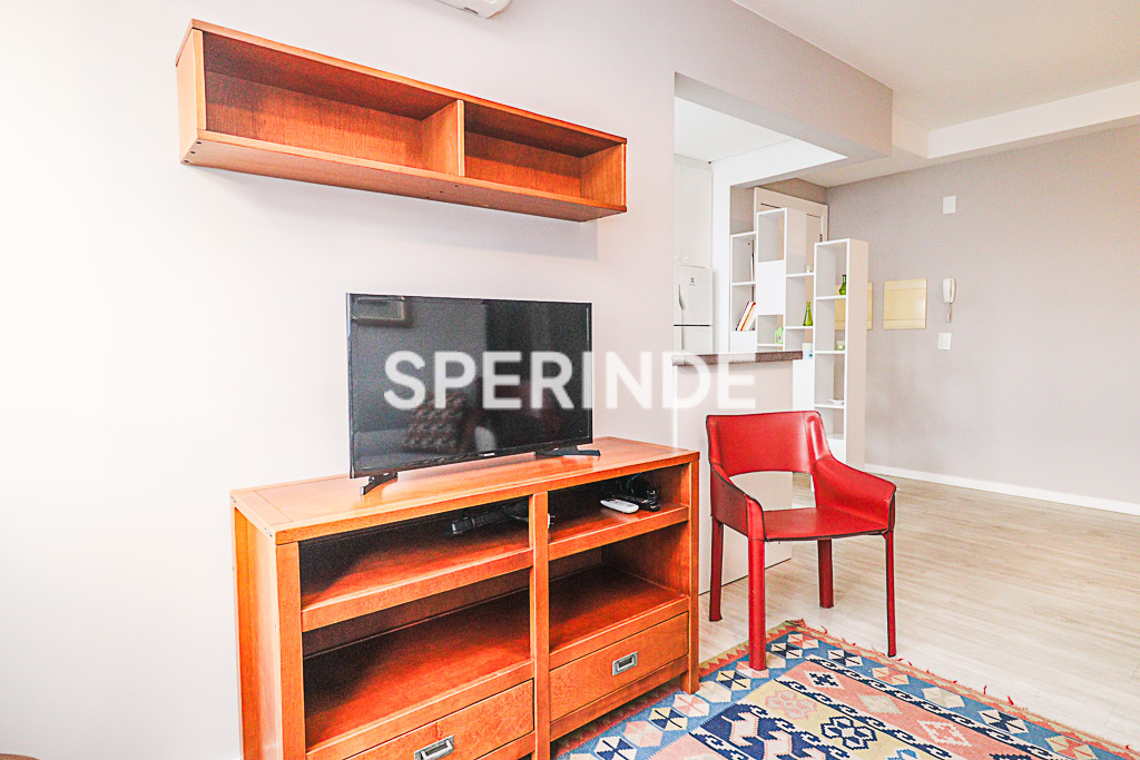 Apartamento mobiliado no bairro Passo D'Areia, em Porto Alegre. Composto por 2 dormitórios, sala, banheiro social e cozinha conjugada com área de serviço. Piso em laminado e cerâmica, split na sala e no dormitório principal, banheiro com box de vidro, móveis sob medida e eletrodomésticos como geladeira, máquina de lavar, micro-ondas e televisão. Possui aquecedor de água a gás.