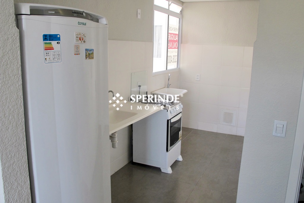 Apartamento bem localizado, próximo a ULBRA Canoas, no bairro São Luis, Canoas. Com 02 quartos, 41,19m², semi-mobiliado, 1 vaga descoberta de estacionamento, posição solar leste. Living, split, quartos, banheiro com box, cozinha com fogão, geladeira e área de serviço conjugados.