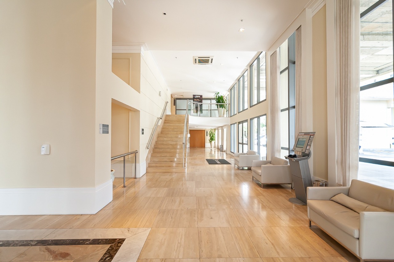 Ótimo prédio com sala de reuniões, gerador para elevador e áreas de uso comum, portaria 24 horas e 5 elevadores.