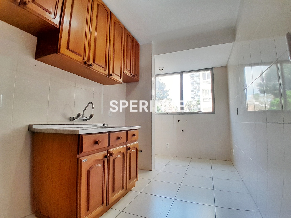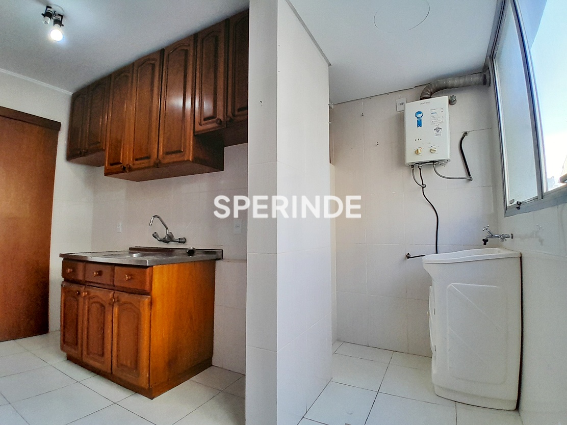 A cozinha possui armários e aquecedor de água a gás, garantindo funcionalidade no uso diário. O prédio conta com portaria e elevadores, proporcionando acesso controlado e circulação facilitada nas áreas comuns.