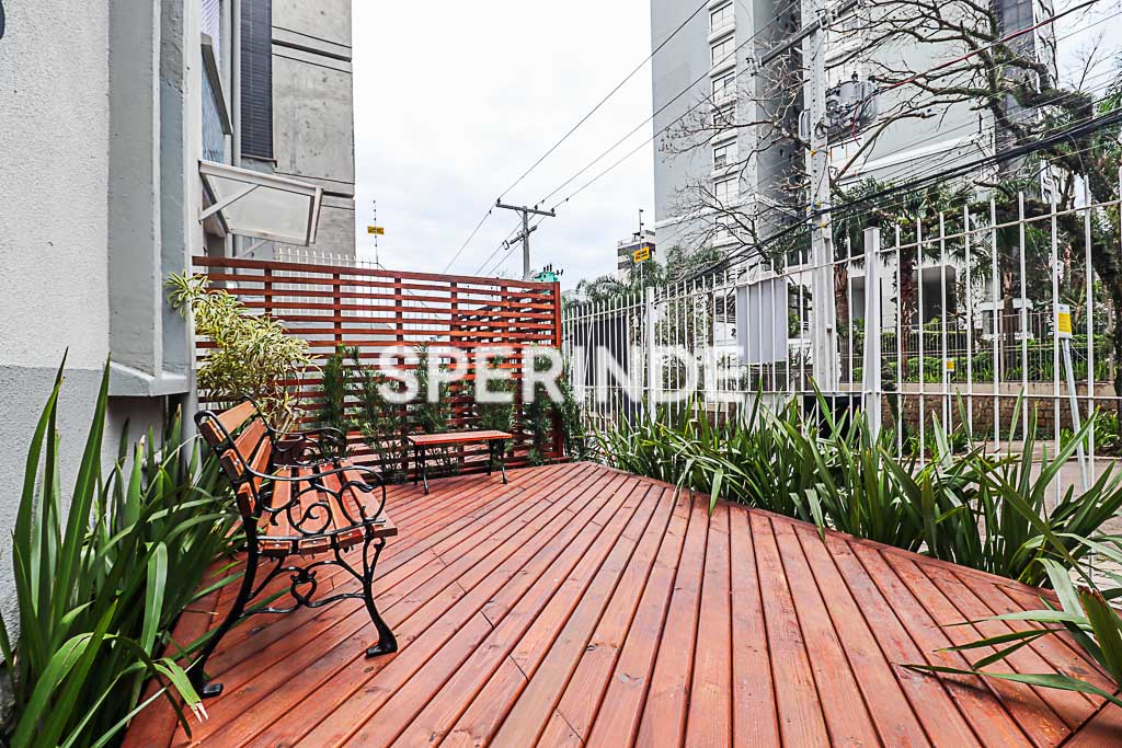 O imóvel é um apartamento de 107 m² com 2 quartos (sendo 1 suíte) e 1 vaga de garagem (com possibilidade de locar mais 1), localizado no bairro Rio Branco, em Porto Alegre. de fundos com excelente orientação solar, o apartamento conta com living em 2 ambientes, cozinha americana com pia e armários, área com churrasqueira, banheiro social com box de vidro e armário, além de área de serviço com tanque. Com piso em porcelanato e parket, o condomínio oferece segurança com cerca elétrica.
