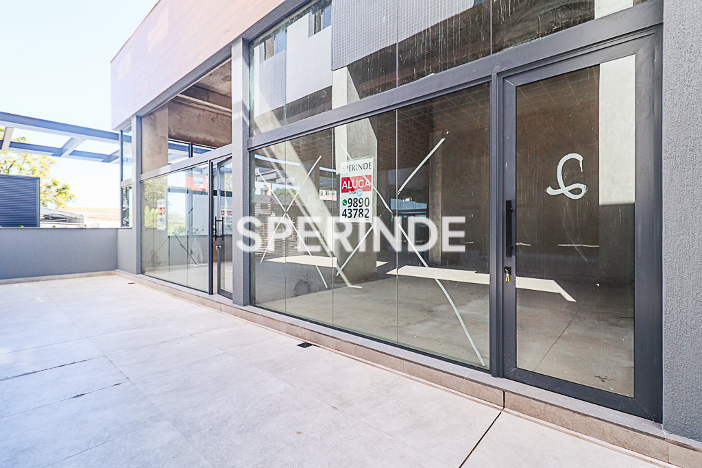 Loja térrea envidraçada no bairro Vila Ipiranga, em Porto Alegre, com pé-direito alto e fachada envidraçada. Localizada em condomínio residencial com complexo comercial no térreo, conta com portaria, zeladoria e acesso controlado por identificação.
