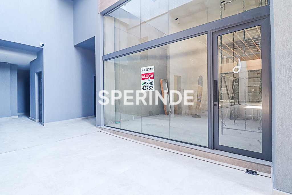 Loja térrea envidraçada no bairro Vila Ipiranga, em Porto Alegre, com pé-direito alto e fachada envidraçada. Localizada em condomínio residencial com complexo comercial no térreo, conta com portaria, zeladoria e acesso controlado por identificação.