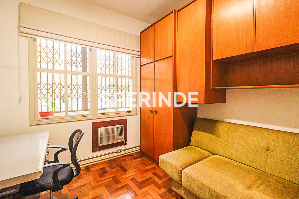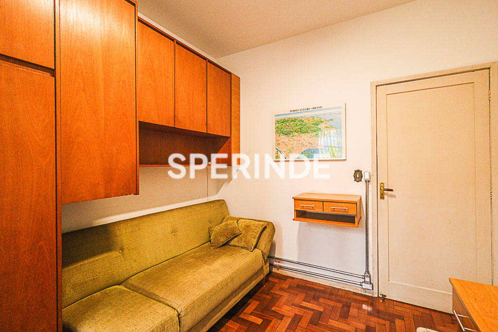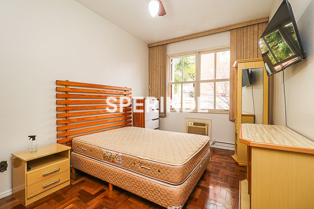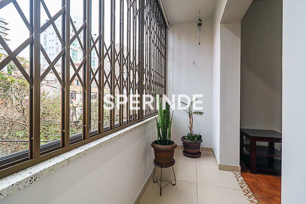 Apartamento com 100m², 2 dormitórios, living com sacada integrada e fechada, sala de jantar, cozinha com pia, armários, fogão e geladeira. Dormitórios com cama, armários e ar-condicionado. Banheiro com box de vidro, corredor com estante e área de serviço separada com tanque, máquina de lavar e junker. Imóvel arejado, bem ventilado e com incidência de sol à tarde, localizado no bairro Rio Branco, em Porto Alegre.
