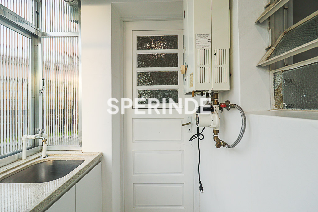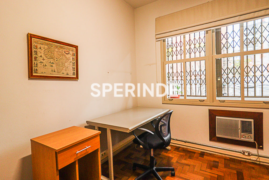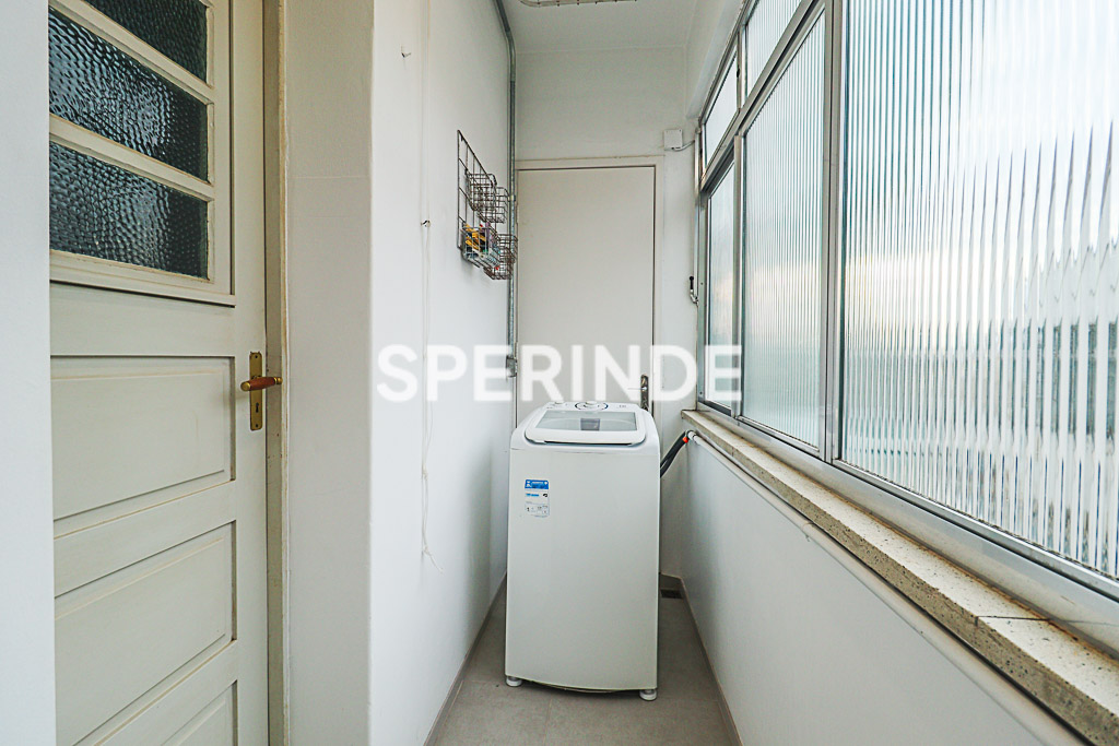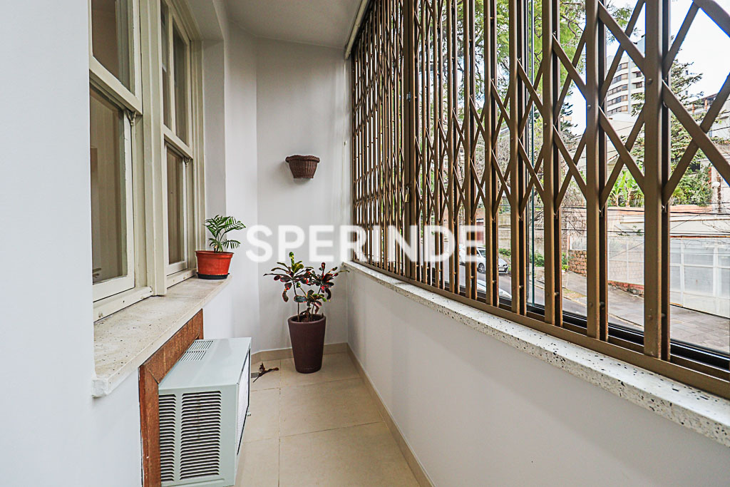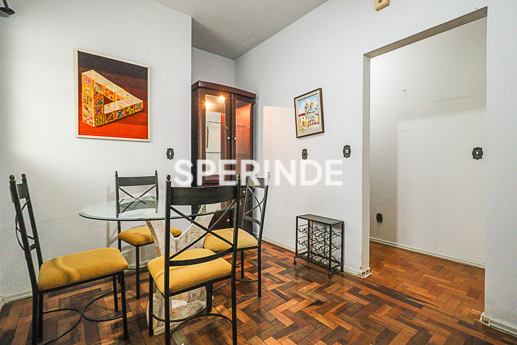 Apartamento com 100m², 2 dormitórios, living com sacada integrada e fechada, sala de jantar, cozinha com pia, armários, fogão e geladeira. Dormitórios com cama, armários e ar-condicionado. Banheiro com box de vidro, corredor com estante e área de serviço separada com tanque, máquina de lavar e junker. Imóvel arejado, bem ventilado e com incidência de sol à tarde, localizado no bairro Rio Branco, em Porto Alegre.