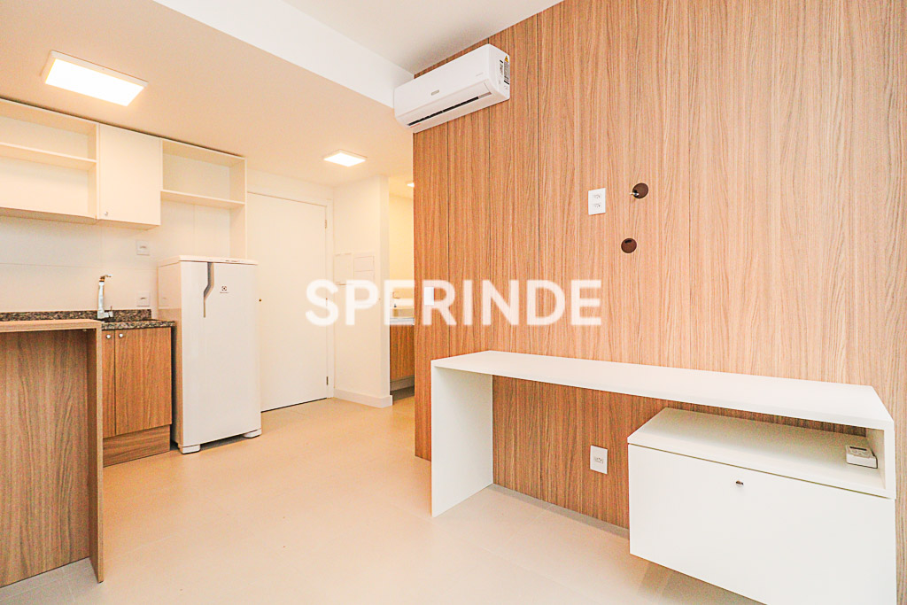 Apartamento mobiliado para alugar no bairro Cidade Baixa em Porto Alegre, com 32m² de área privativa. Possui 1 quarto com armários planejados e ventilador de teto, living lateral com sacada, sofá e split, cozinha americana equipada com móveis planejados, pia em granito, cooktop, forno elétrico, geladeira e aquecedor digital que atende chuveiro e pias. 1 vaga de garagem coberta e posição solar noroeste, garantindo ótima luminosidade natural. Endereço: Avenida João Pessoa – Cidade Baixa, Porto Alegre/RS.