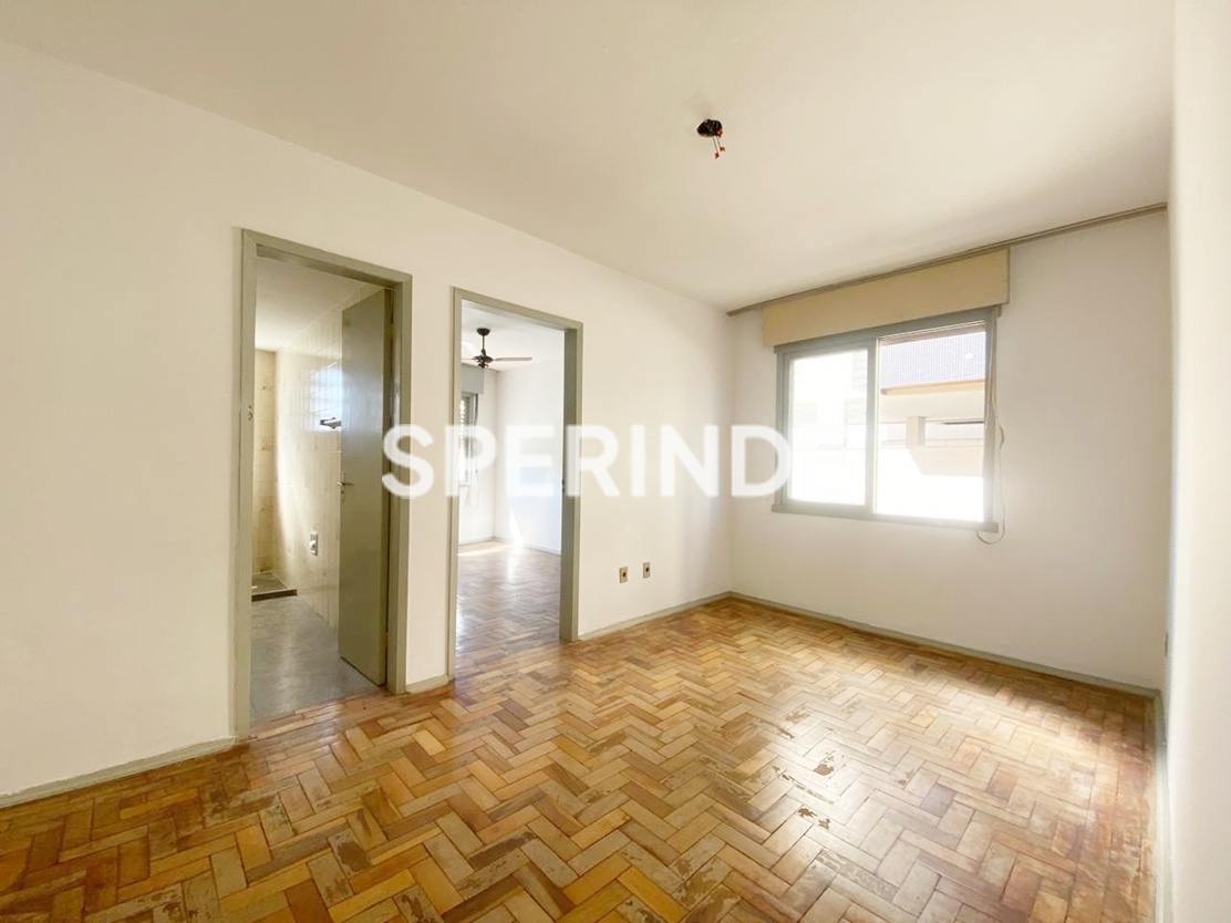 Apartamento para alugar no bairro Santa Maria Goretti em Porto Alegre, com 43m² de área privativa. Conta com living amplo, cozinha com pia e armários, área de serviço, 1 quarto bem ventilado com ventilador de teto e banheiro. Possui piso parquet.