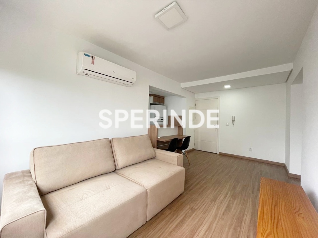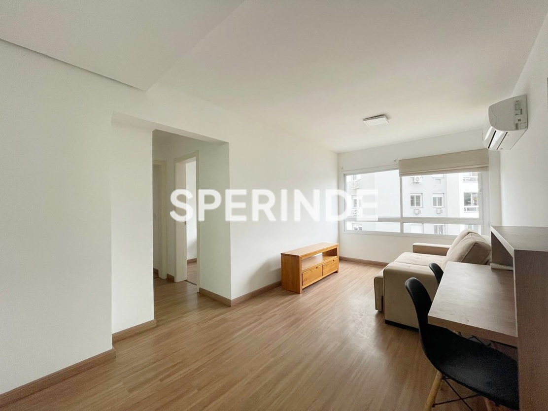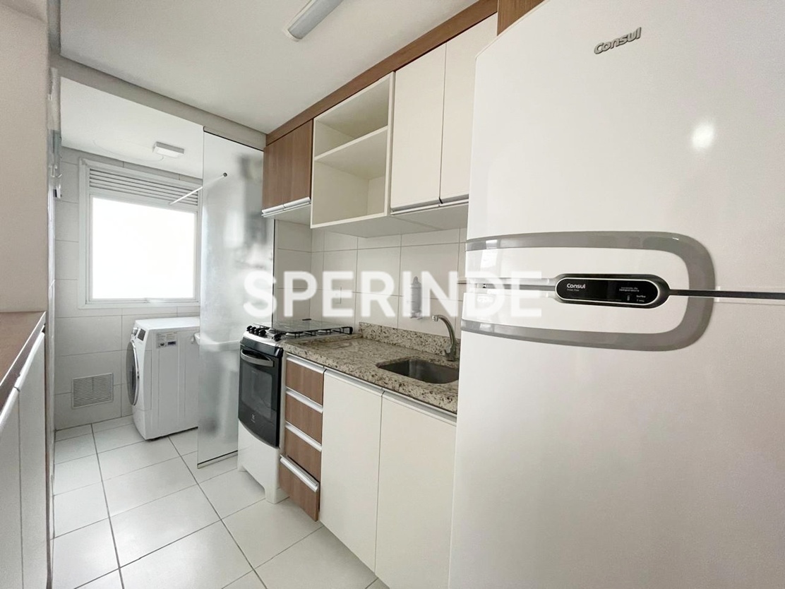 Apartamento semimobiliado para alugar no bairro Partenon em Porto Alegre, com 54m² de área privativa. Possui 2 quartos, sendo 1 suíte com split, roupeiro e cama box, living amplo com split, sofá retrátil e rack para TV. Cozinha americana equipada com armário planejado, filtro de água, geladeira, fogão, coifa e churrasqueira. Área de serviço com tanque, Juncker e máquina de lavar. Conta ainda com banheiro social com box de vidro, piso laminado, posição solar leste e 1 vaga de garagem coberta.