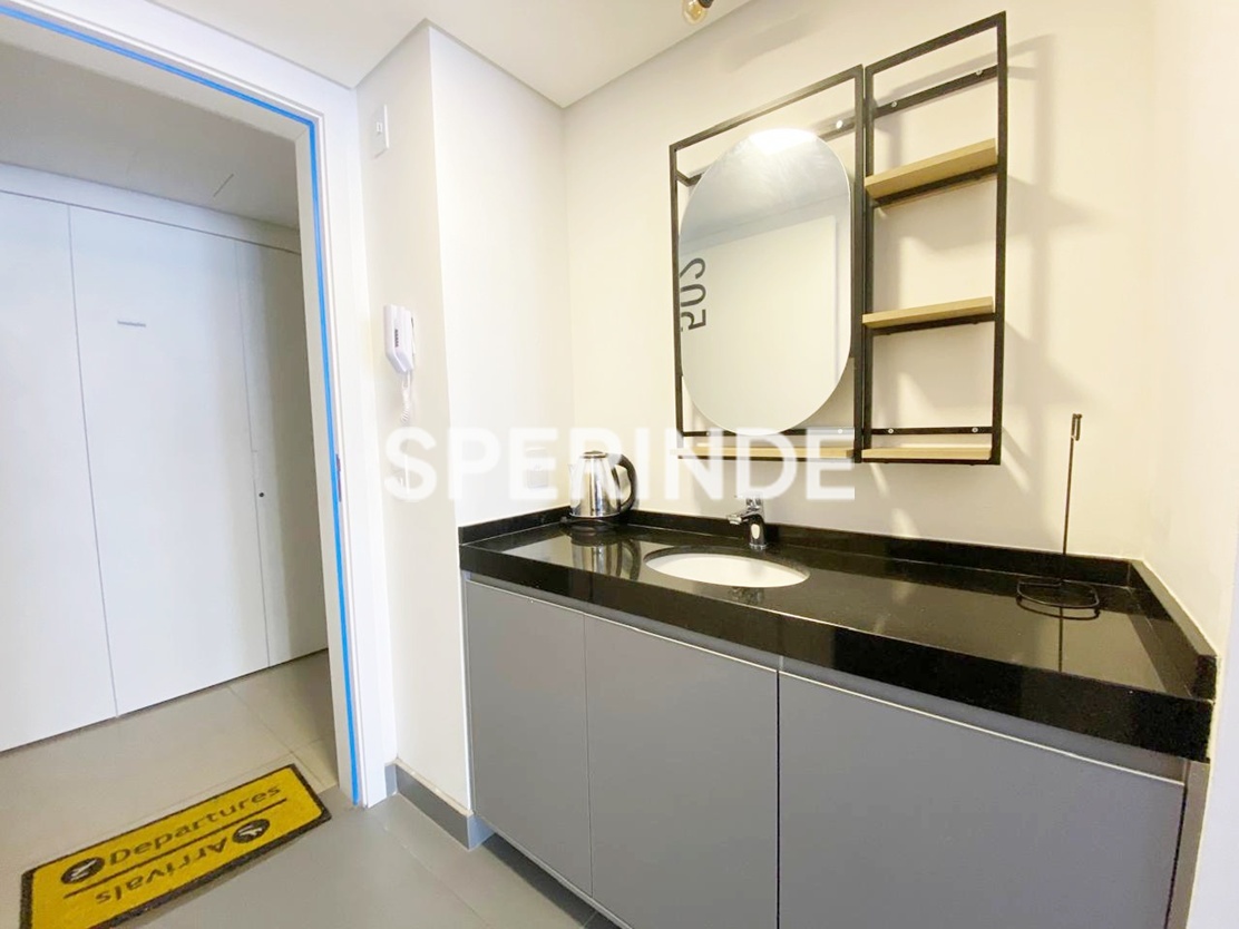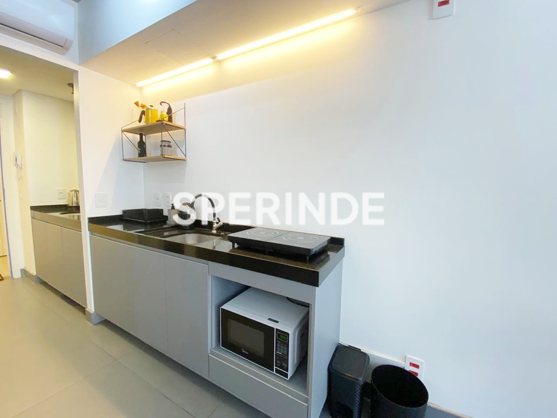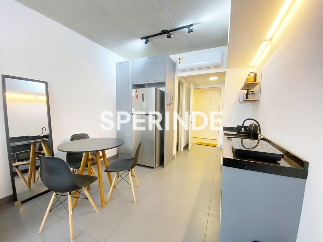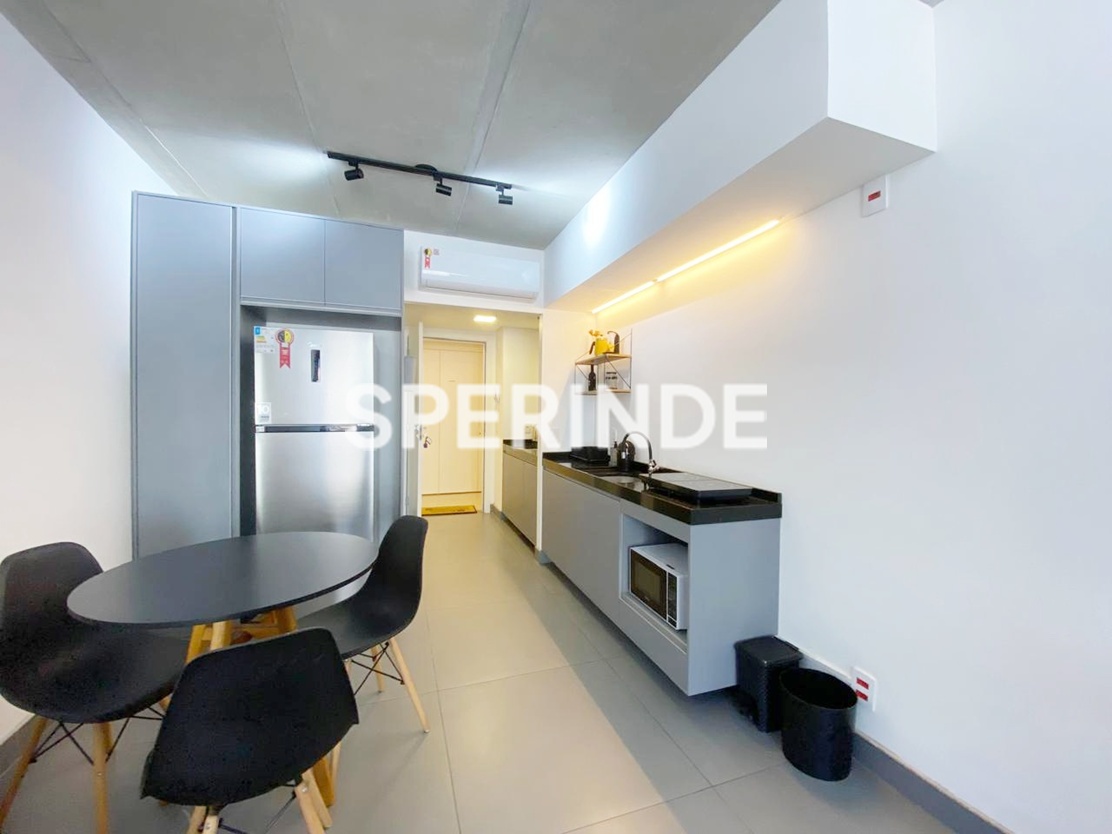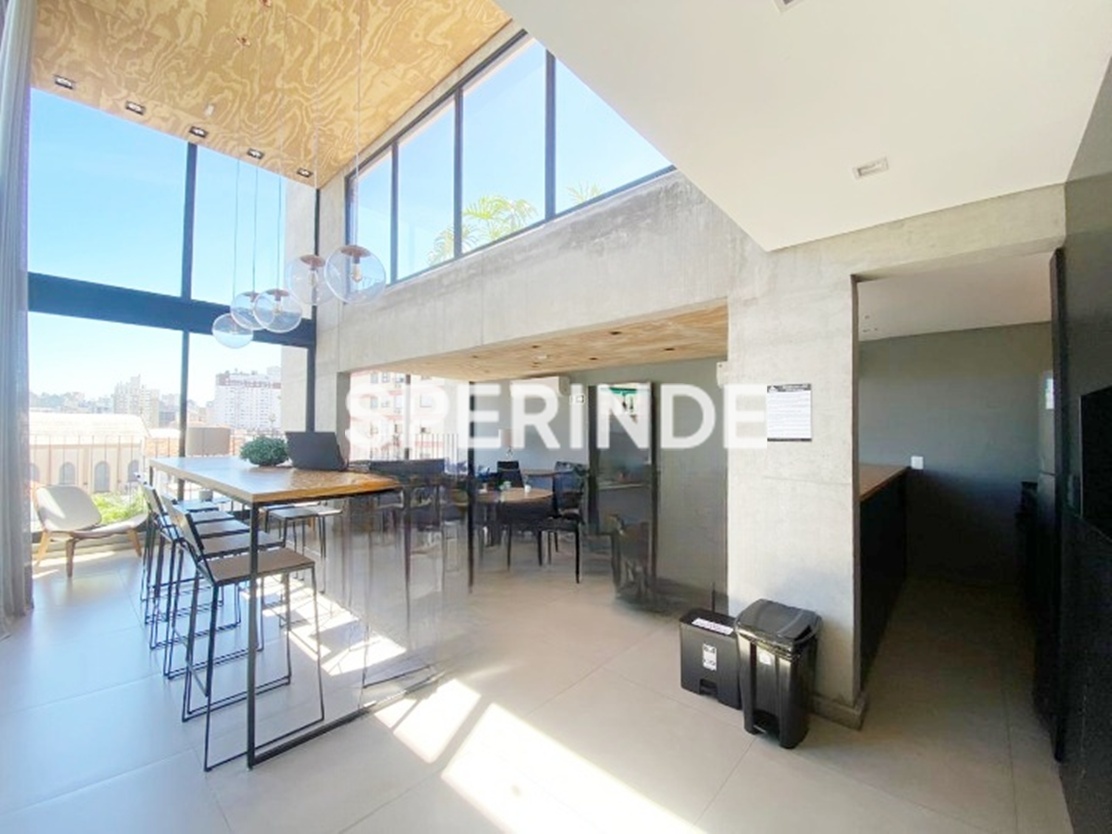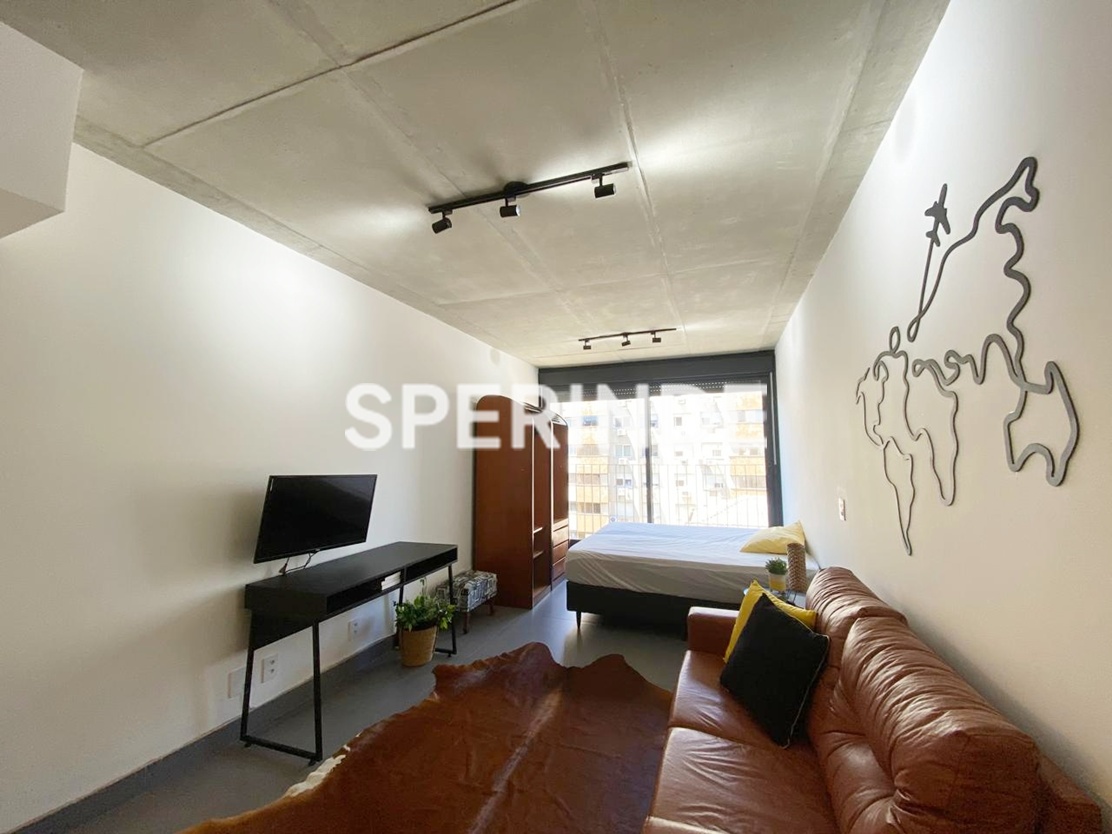 Studio mobiliado para alugar na Avenida Venâncio Aires, no bairro Cidade Baixa em Porto Alegre. O imóvel possui 34m² de área privativa, com ambiente integrado de estilo industrial, cama de casal box, armário planejado, home office, sofá, cozinha equipada armários, geladeira, cooktop de indução, micro-ondas, pia gourmet. Conta ainda com banheiro com box de vidro, sacada com vista e 1 vaga de garagem coberta e escriturada.