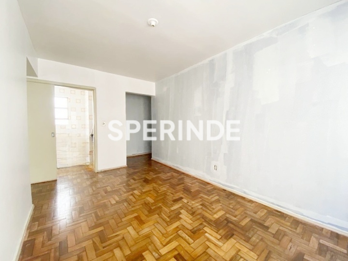 Apartamento para alugar na Rua da República, no bairro Cidade Baixa, em Porto Alegre. Possui 46m² de área privativa, 1 quarto, living amplo, cozinha com armário embutido e pia, área de serviço com tanque e banheiro social com box de vidro. Conta com piso parquet, posição solar oeste e andar baixo, garantindo boa iluminação natural.