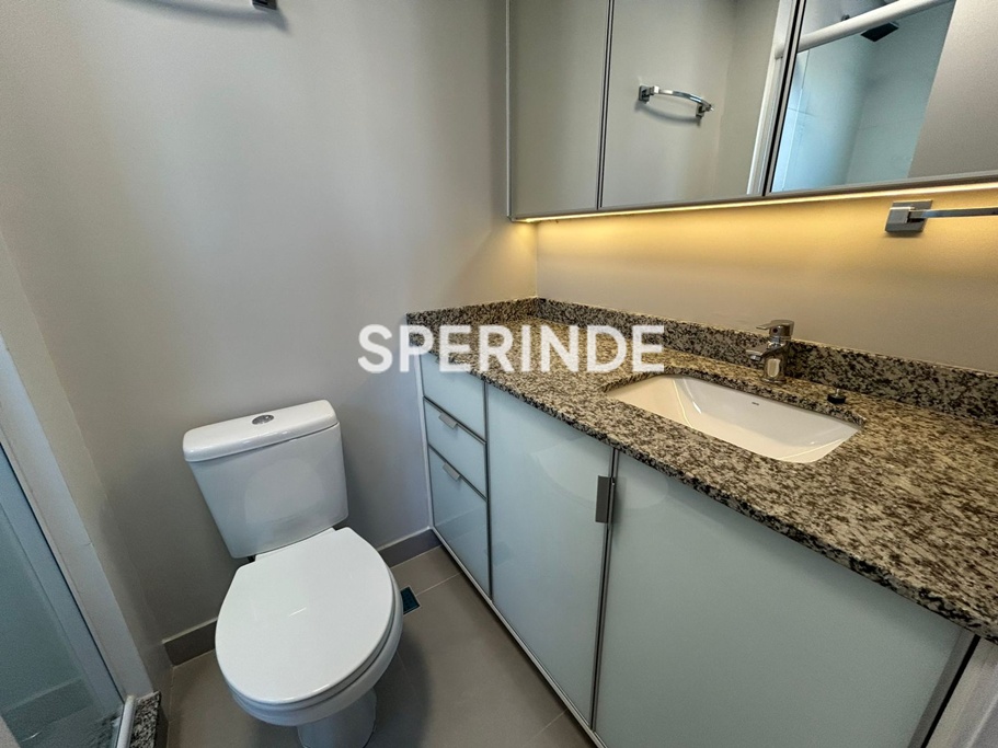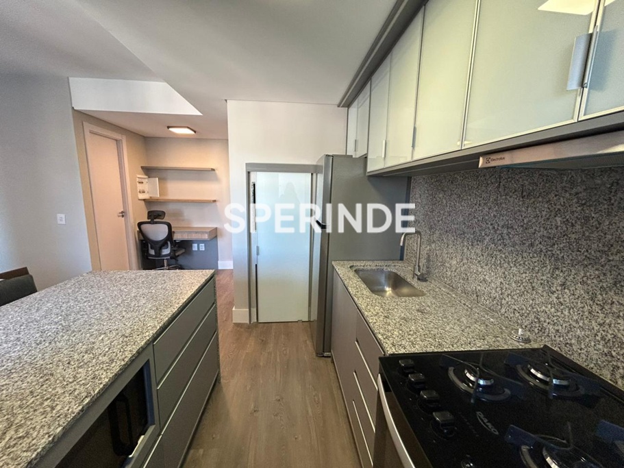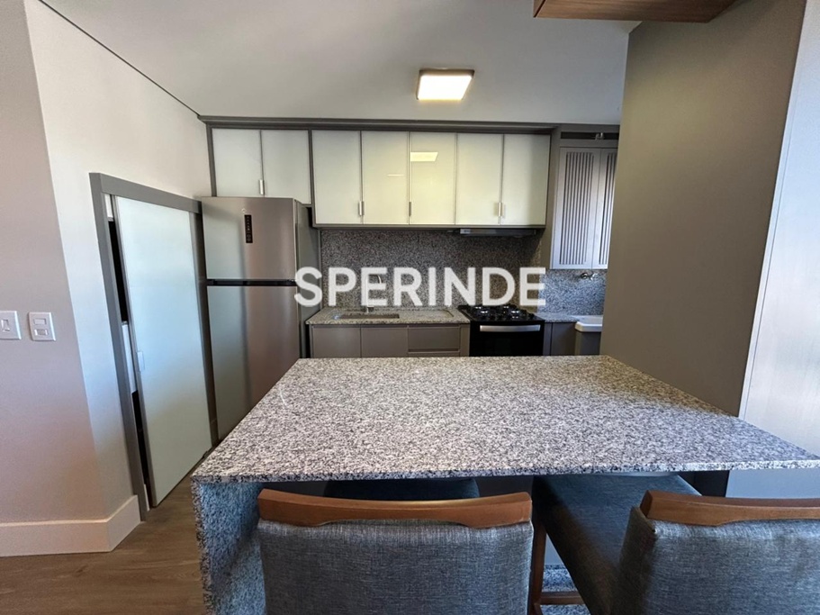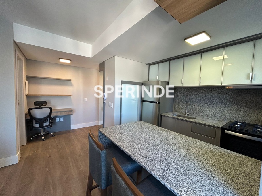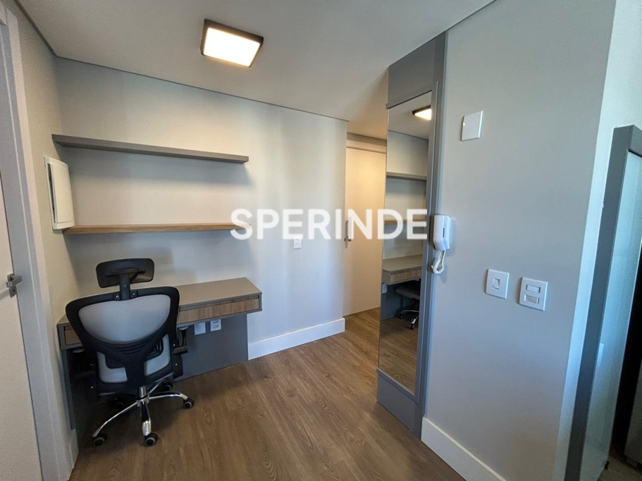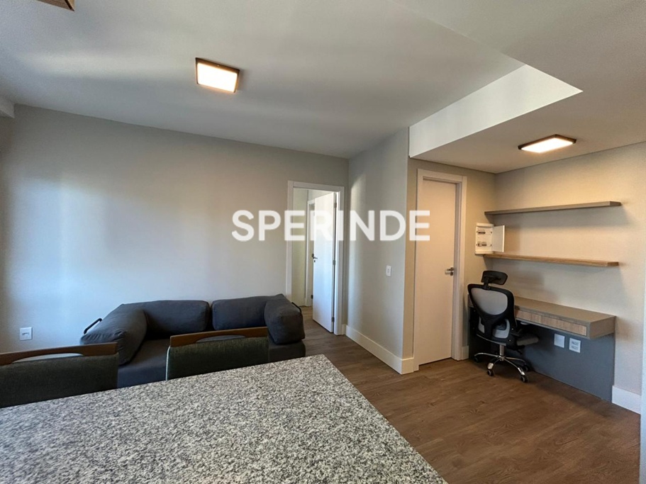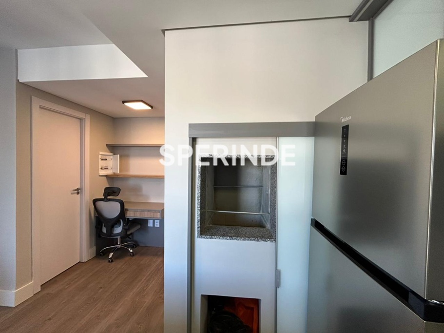 O apartamento possui 1 suíte, sala, banheiro social e churrasqueira, oferecendo conforto em um imóvel mobiliado e de primeira ocupação.
