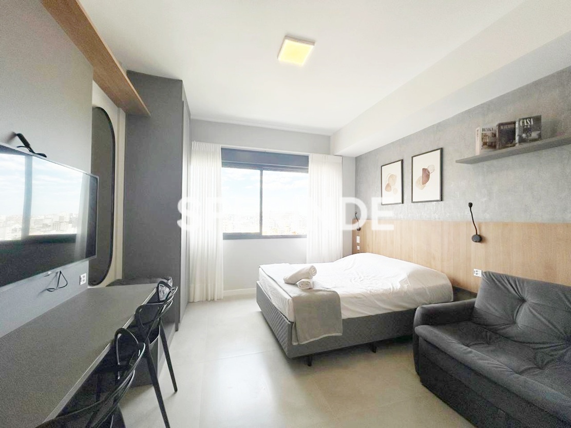 Loft para alugar no Bela Vista. O imóvel possui 43m², 1 quarto e está completamente mobiliado, localizado na Rua Casemiro de Abreu, 576, bairro Bela Vista, em Porto Alegre. Conta com cozinha equipada, living mobiliado, dormitório com cama box e banheiro completo.
