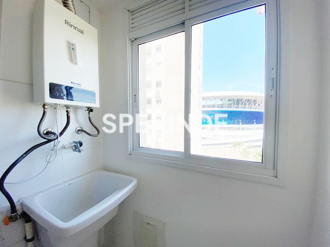 Apartamento com 64m², 2 quartos (sendo um deles suíte), living amplo com dois ambientes e sacada, cozinha sob medida com churrasqueira, área de serviço integrada com aquecedor a gás e banheiro social com box de vidro. Conta com 1 vaga de garagem coberta. Orientação solar norte. O condomínio oferece portaria 24h, piscina adulta e infantil, salão de festas, salão gourmet, academia, brinquedoteca, sala de jogos adulto e juvenil, sala de sinuca, playground, deck park com quadra poliesportiva, quiosques com churrasqueira, áreas de convivência, pista de caminhada, estacionamento para visitantes e mercado de conveniência 24h, além de feira semanal. Endereço completo: informe para incluir no padrão.
