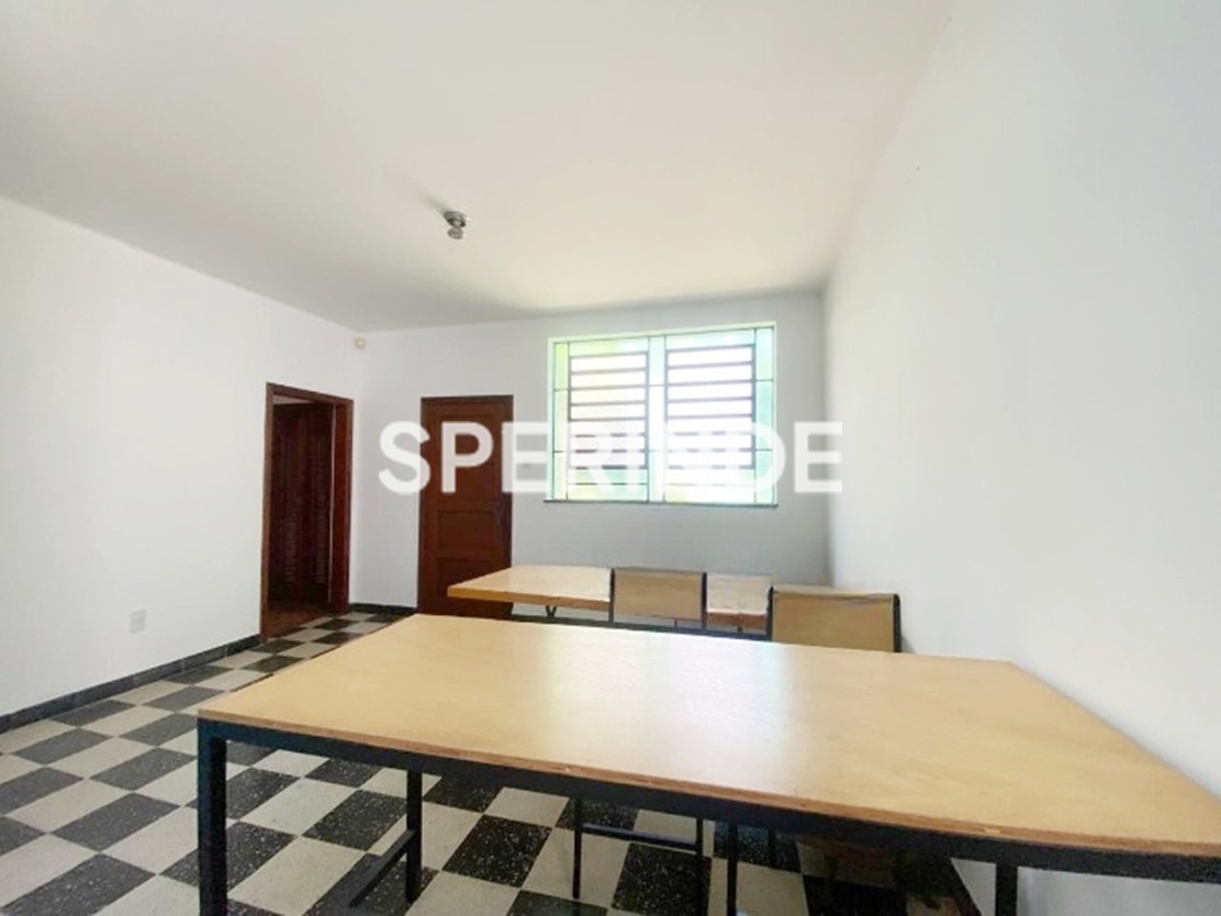 Casa comercial com 207m² de área útil, distribuída em hall de entrada, living amplo com piso em parquê e ar-condicionado, escritório com split e mais dois quartos, ambos com armários, sendo um deles também equipado com split. Conta com banheiro social de grandes dimensões com banheira, além de um segundo banheiro independente com chuveiro. A cozinha possui espaço generoso, área adicional para refeições e ambiente de convivência integrado. Dispõe ainda de depósito, área de serviço ampla com tanque e pátio nos fundos com churrasqueira. Possui garagem para um carro.