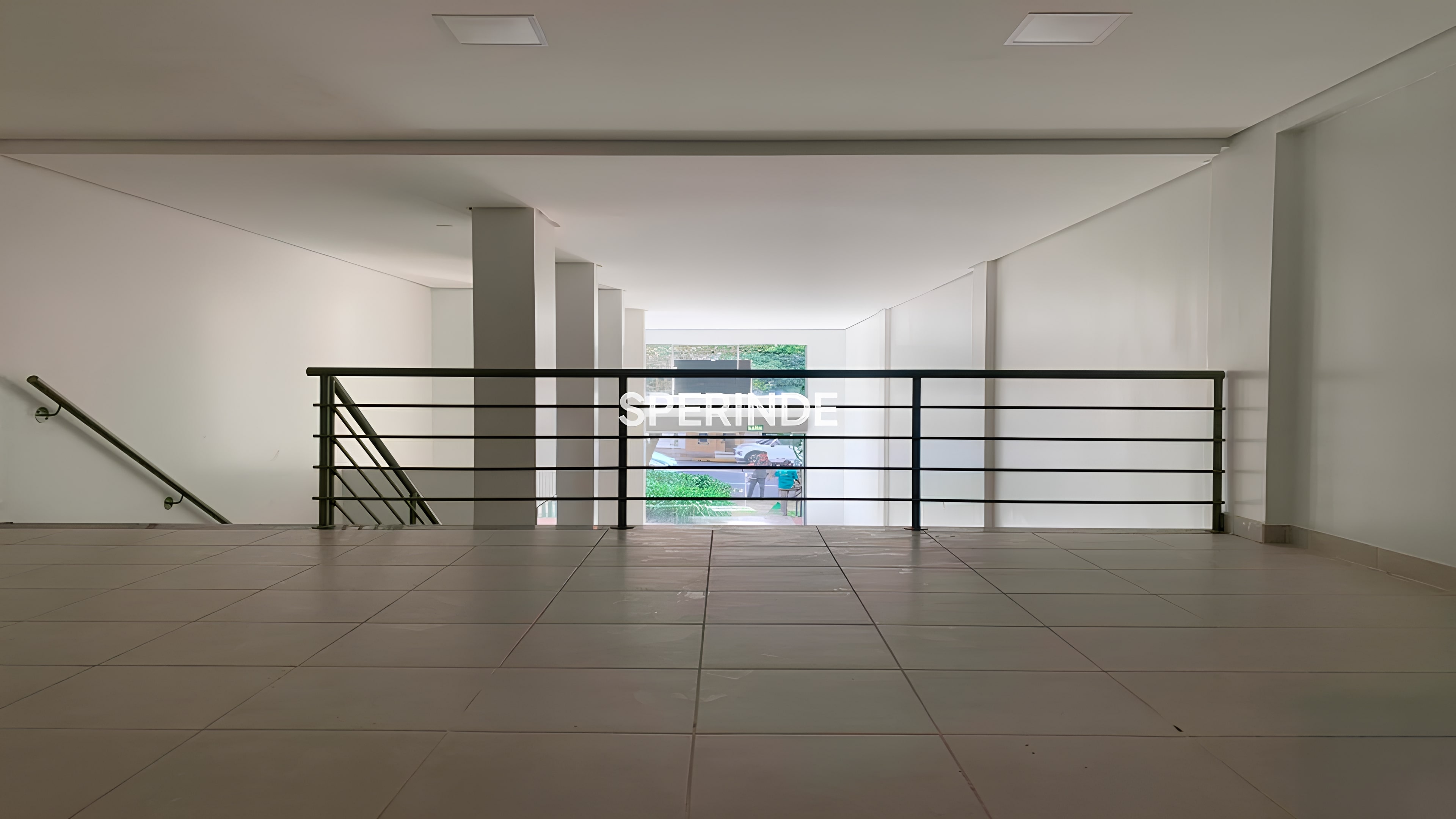 Área de 210m², 03 banheiros, mezanino, caixa d'água, piso cerâmico, fachada em vidro.