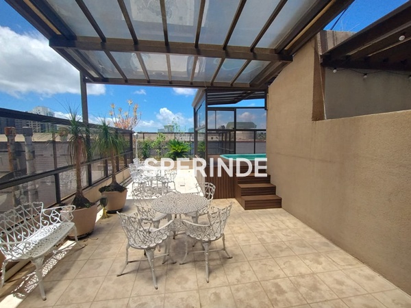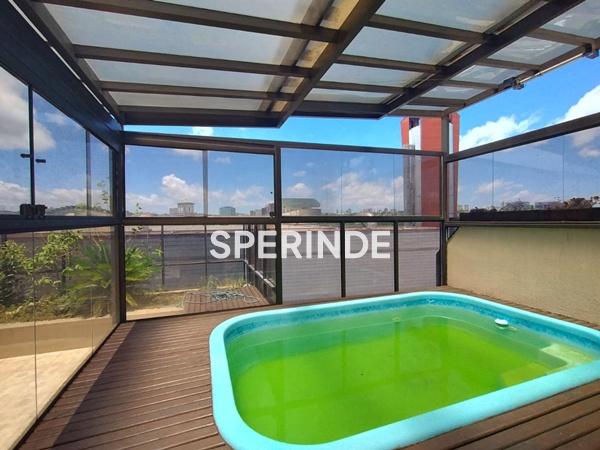 O destaque fica por conta do terraço com piscina, ideal para relaxar e curtir momentos ao ar livre. A cobertura ainda conta com vaga de garagem dupla, trazendo comodidade para a rotina. O condomínio oferece salão de festas, proporcionando um espaço completo para receber familiares e amigos.