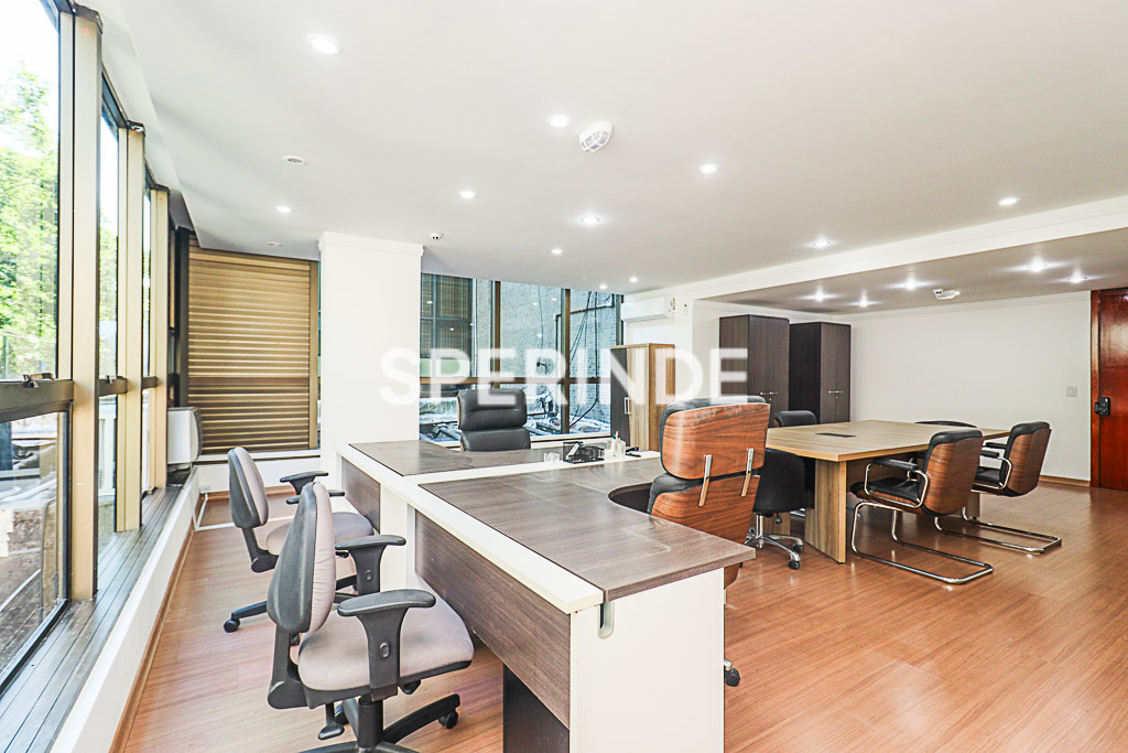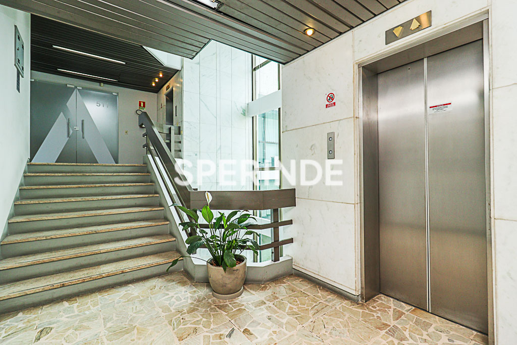 Edifício com elevador, proporcionando acesso facilitado. Imóvel com metragem definida e layout simples, adequado para diferentes tipos de uso comercial. Prédio na esquina da Av. Carlos Gomes e com portaria 24 horas.