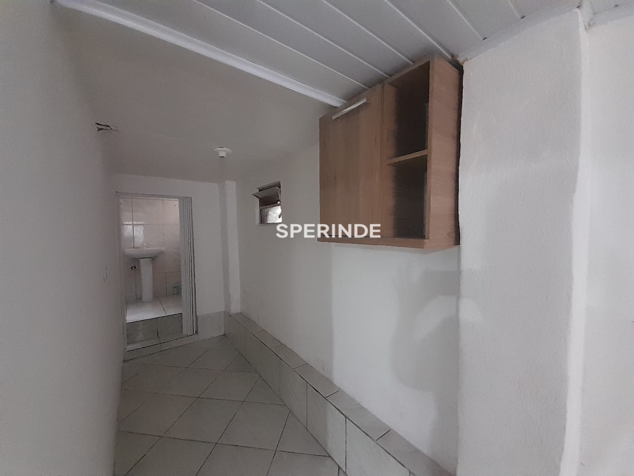 Casa inferior de fundos de 35 m² no bairro São Leopoldo, Caxias do Sul, com 1 dormitório, sala, cozinha, área de serviço, banheiro social e piso em cerâmica.