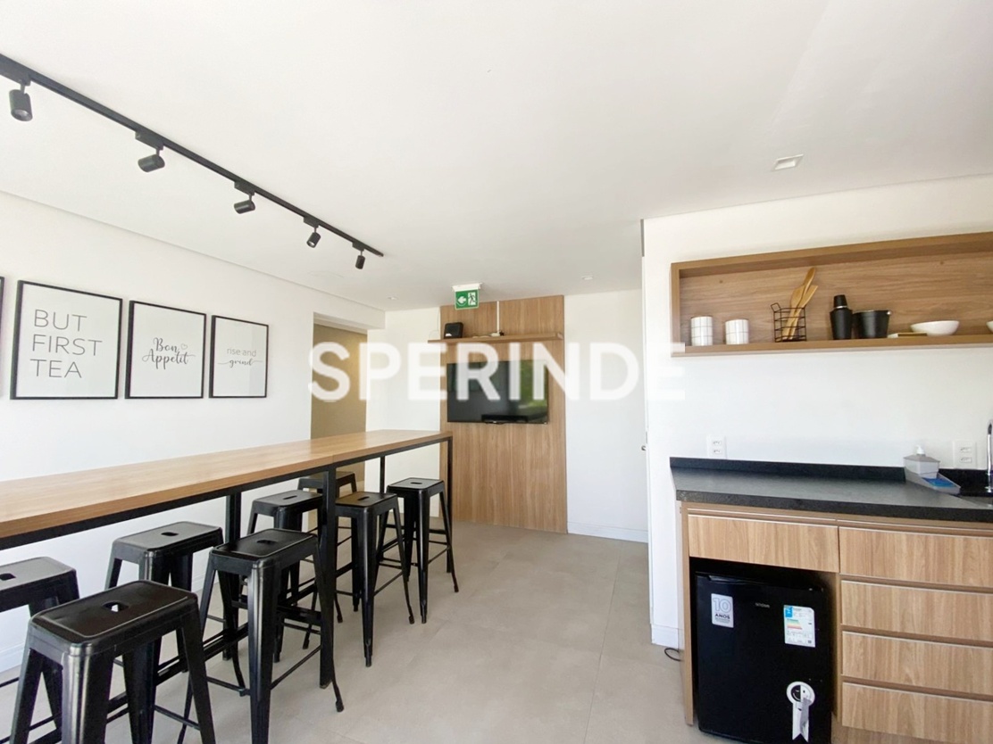 Apartamento com 58m² de área privativa, composto por 2 quartos, sendo 1 suíte, living para dois ambientes, cozinha americana com churrasqueira e armários, área de serviço com tanque, aquecedor e armário e banheiro social com box e armário. Conta com 1 vaga de garagem coberta e planta funcional, adequada para uso residencial.