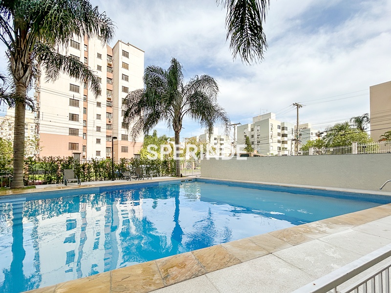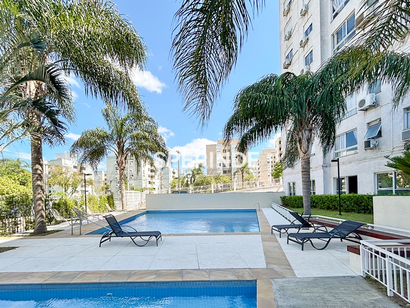 O condomínio é fechado e conta com apenas duas torres, oferecendo infraestrutura completa de lazer e segurança. Possui portaria 24 horas, salão de festas, churrasqueira, academia, piscinas adulto e infantil, dois playgrounds, brinquedoteca, quadra poliesportiva, quiosques, água quente e dois elevadores por torre. Localização estratégica, próximo à Avenida Sertório, Avenida Assis Brasil, Zaffari, Shopping Center Lar (Cassol) e McDonalds. O condomínio está de frente para uma charmosa praça arborizada, proporcionando uma vista agradável e mais contato com a natureza.